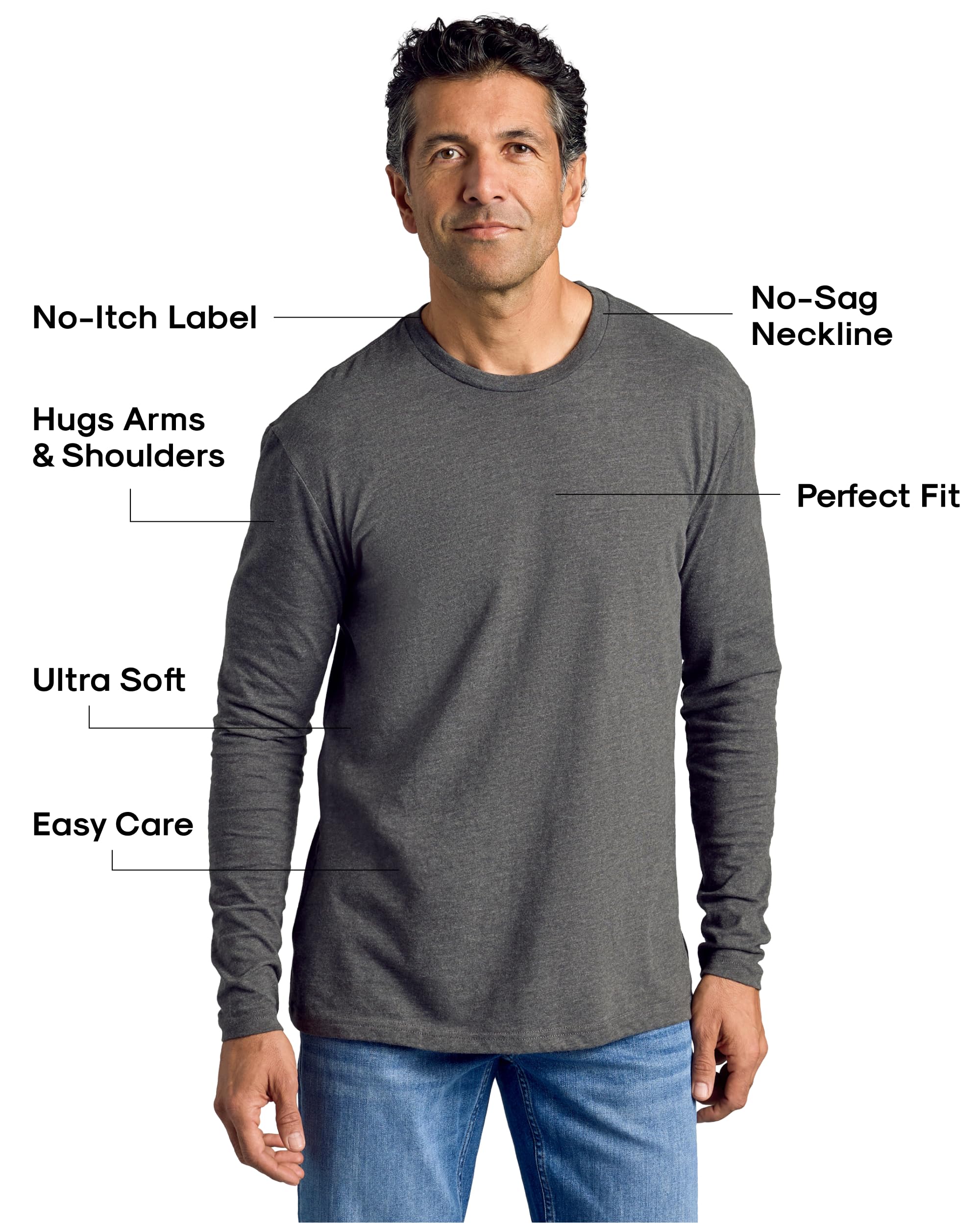ALL-DAY COMFORT, TAG-FREE: Long sleeve men's t-shirts built for easy wear from workdays to weekends. Our classic crew and mens henley shirts have tagless prints with classic side seams that keep shape with minimal shrinkage (about 5% on low heat).