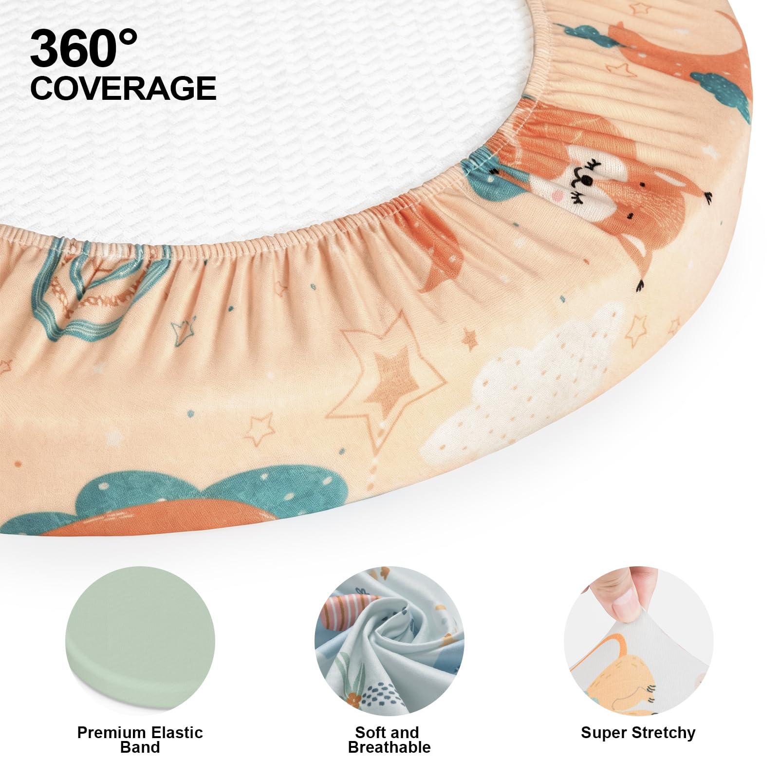 Quick & Silent Installation: Our soothing bassinet fitted sheet features SnugFit Technology and is made from stretch fabric for easy installation and removal. The securely stitched elastic edges wrap around the mattress for a perfect fit, making it easy for parents to quickly change the fitted sheet during late-night diaper leaks or spit-up.
