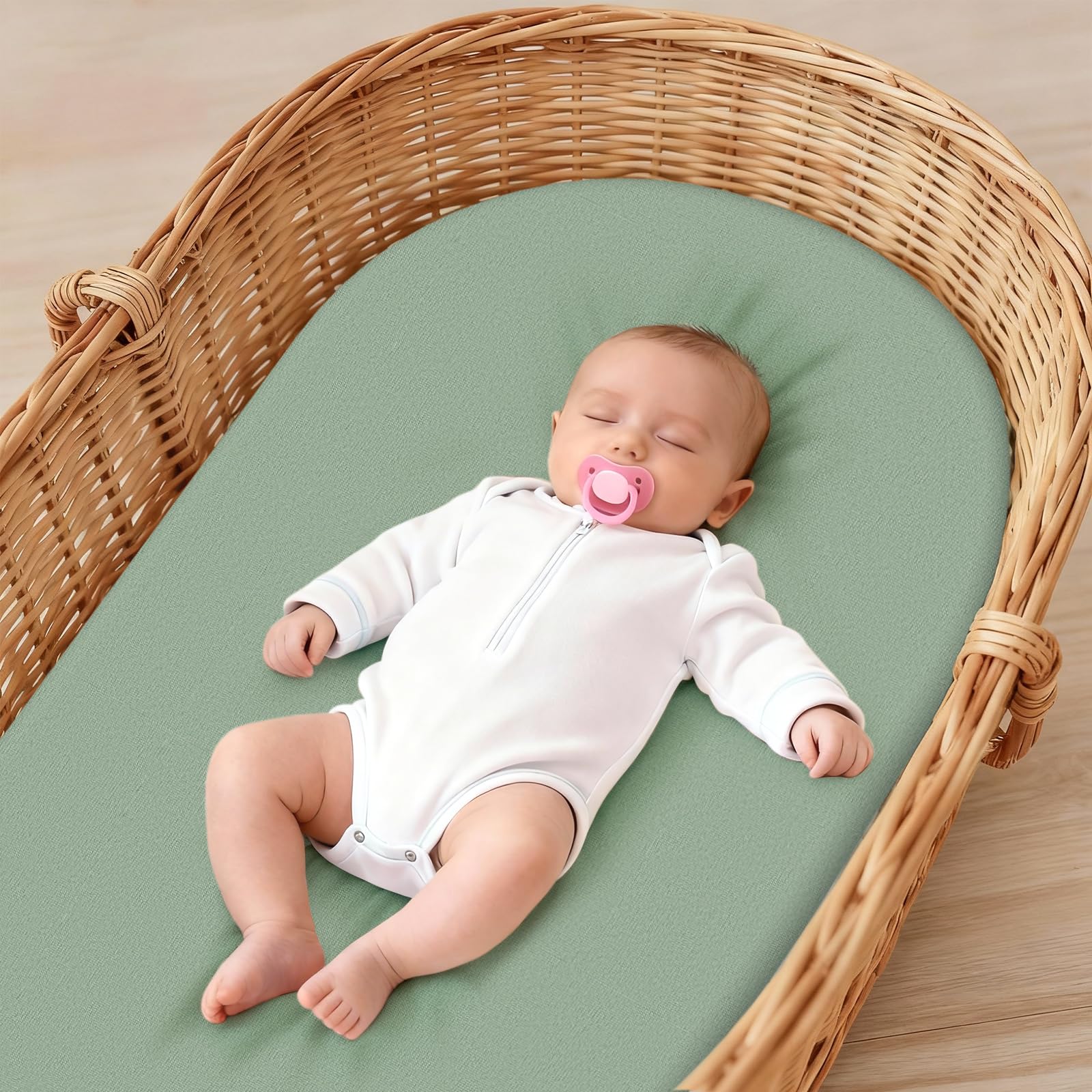 High-quality & Safe: Our bassinet fitted sheet is made from ultra-soft microfiber woven into a soft knit fabric. It keeps your baby safe while providing a breathable, soft surface perfect for sensitive skin, ensuring a soft, smooth, and comfortable feel while sleeping or playing in the bassinet.