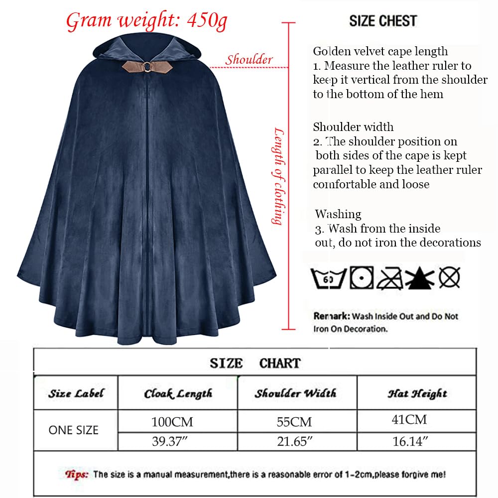 Quality Velvet Material: 1 - The soft velvet offers a smooth feel, soft, and breathable. 2 - Our medieval hooded cape provides comfort, elegance, and excellent coverage.