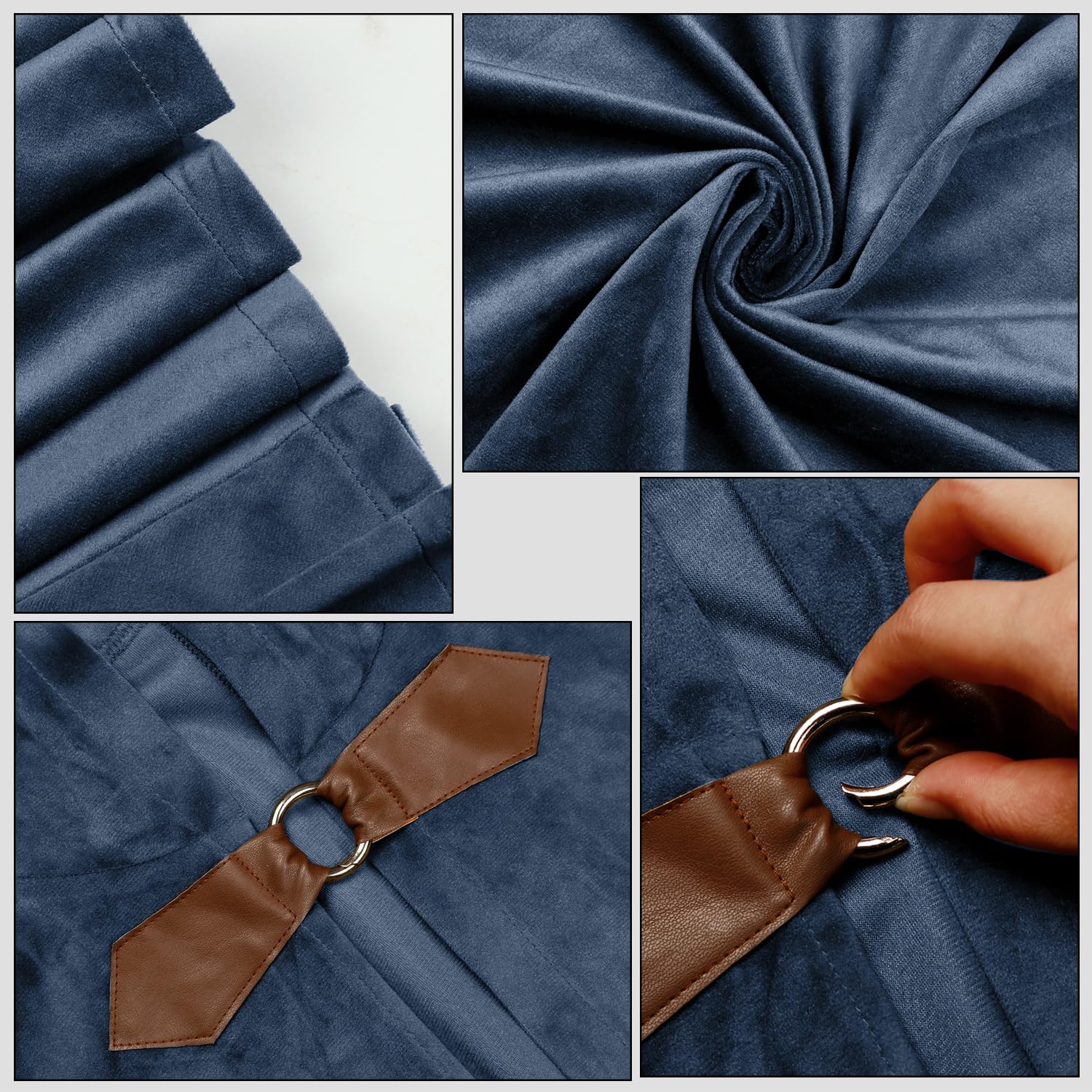 Attention to Detail: 1 - Leather buckle connecting detail on chest placket adds mid-century charm. 2 - Each cloak is carefully designed with a focus on detail and durability.