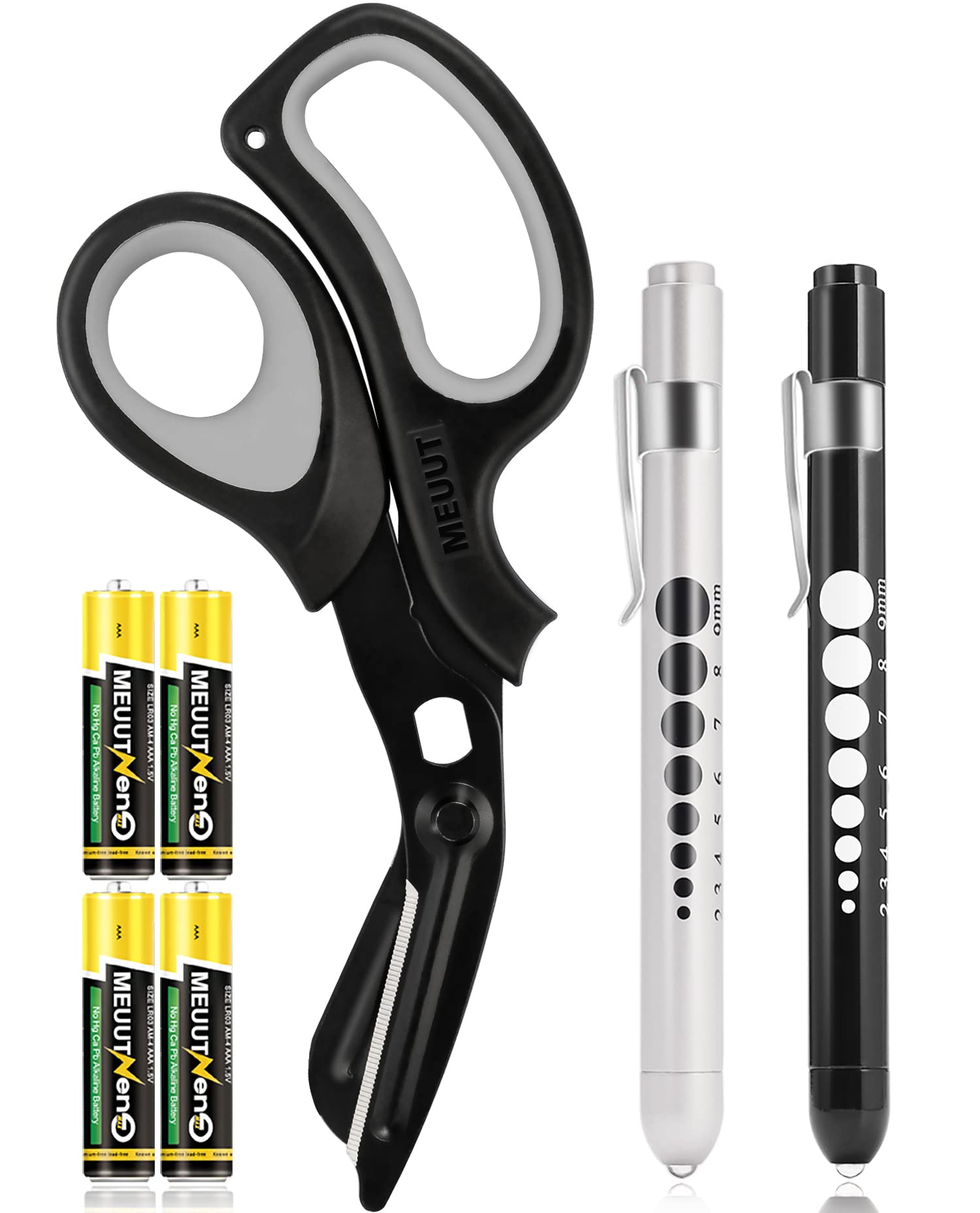 【PERFECT MED KIT】: Contained 2 pack LED medical pen lights for nurses with 4 AAA batteries, and 1 pack medical scissor trauma shears, Perfect nurse accessories for work, medical supplies penlights for nurses doctors EMT