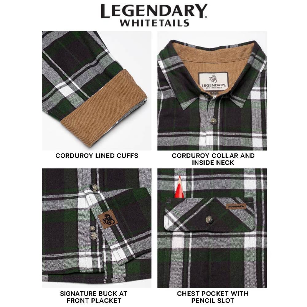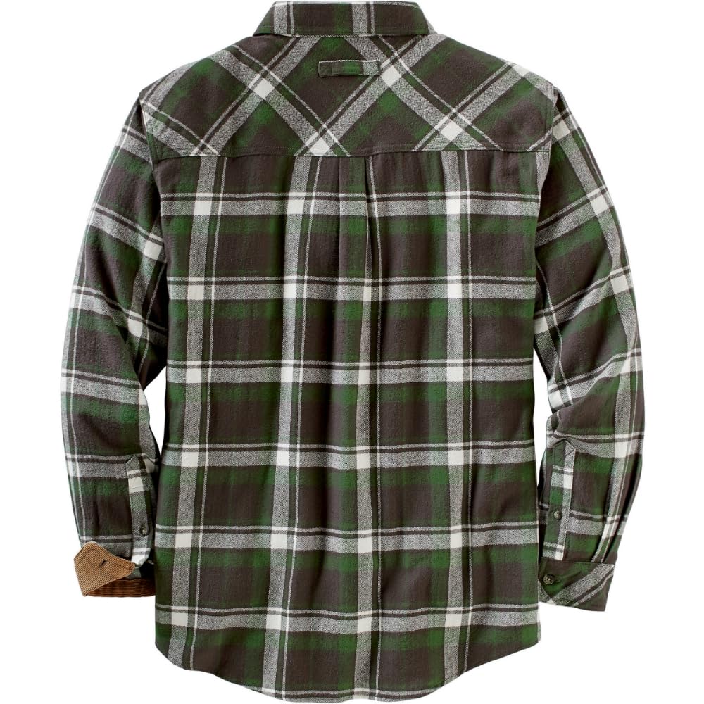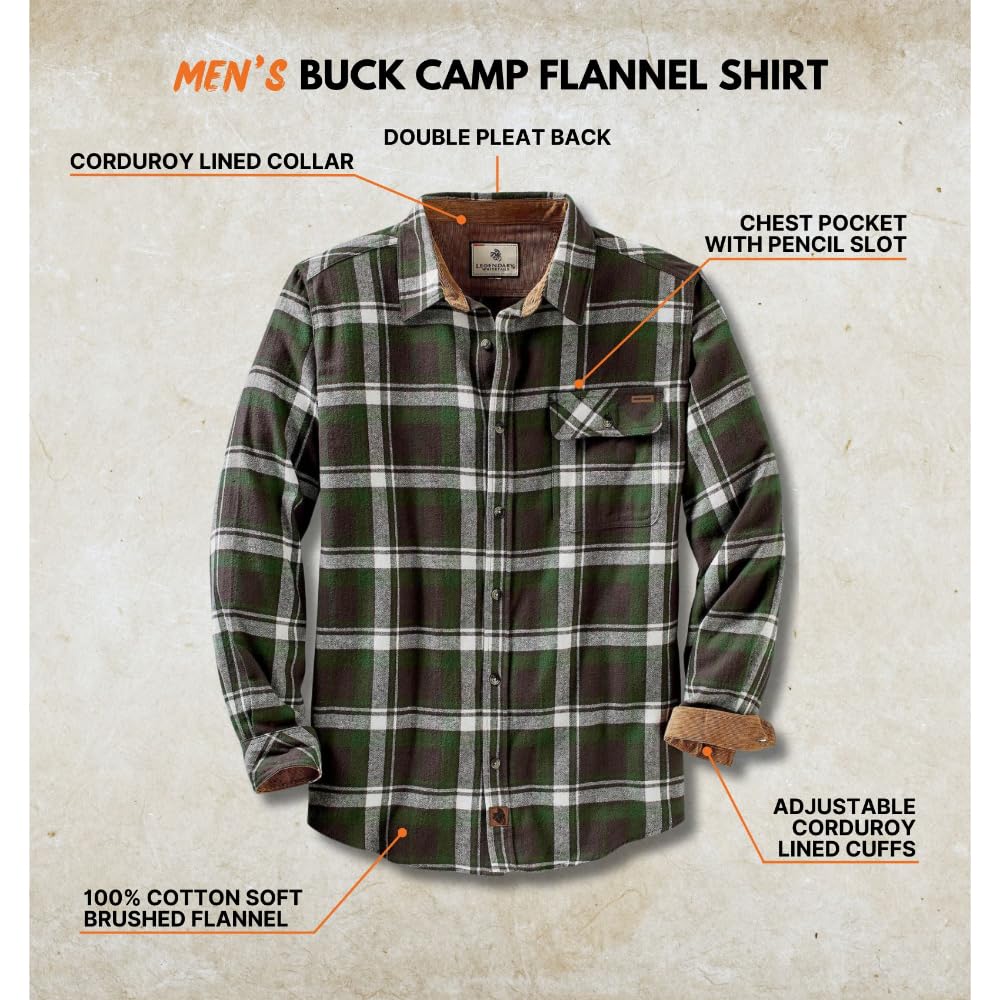 Description Our original single pocket flannel - The Buck Camp Flannel Shirt is the perfect weight to wear alone or layered over a t-shirt or under a shirt jacket. The traditional style and signature corduroy details offer unmatched durability, while the relaxed fit and brushed cotton flannel provide ultimate comfort. With multiple exclusive plaids and solids, they're suitable for any occasion from the woods to the office. The Buck Camp Flannel Shirt gives you an incredible "bang for your buck"! Big & Tall sizes are designed for men over 6'2" and add 2" in body length and 1-1⁄2" in sleeve length.