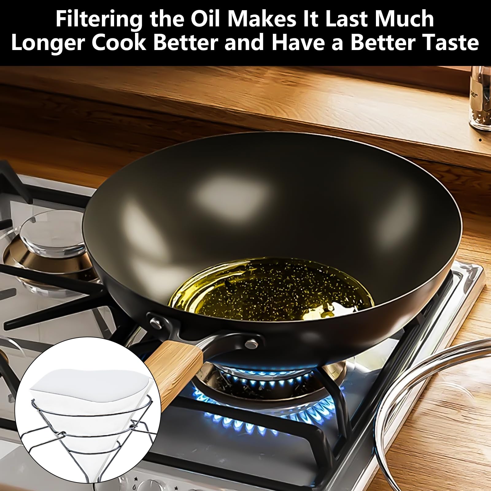 【Effortless Grease Filtration for Better Taste】: The Oil Strainer for Deep Fryer works seamlessly with Fryer Oil Filters and high-quality filter paper cones, ensuring your fried food tastes cleaner and fresher by effectively filtering out grease and impurities.
