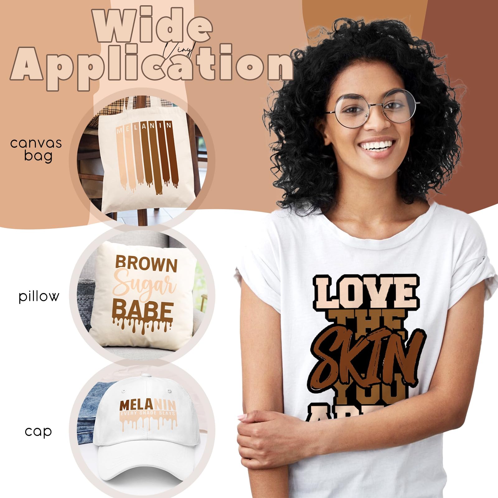 Multiple Color Options - Our htv heat transfer vinyl set includes 16 sheets of different colors, giving you plenty of options to choose from. The brown melanin adds a unique touch to your personalized designs, making them truly one-of-a-kind.