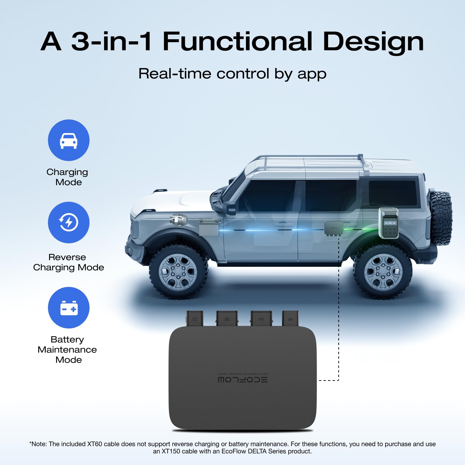 5× Faster Than a Car Cigarette Lighter Charger: The 500W Alternator Charger replenishes 1kWh of energy to your portable power station within a 2.1 hour drive, tapping surplus alternator power to keep phones, coffee makers, lights, and more running on the move.