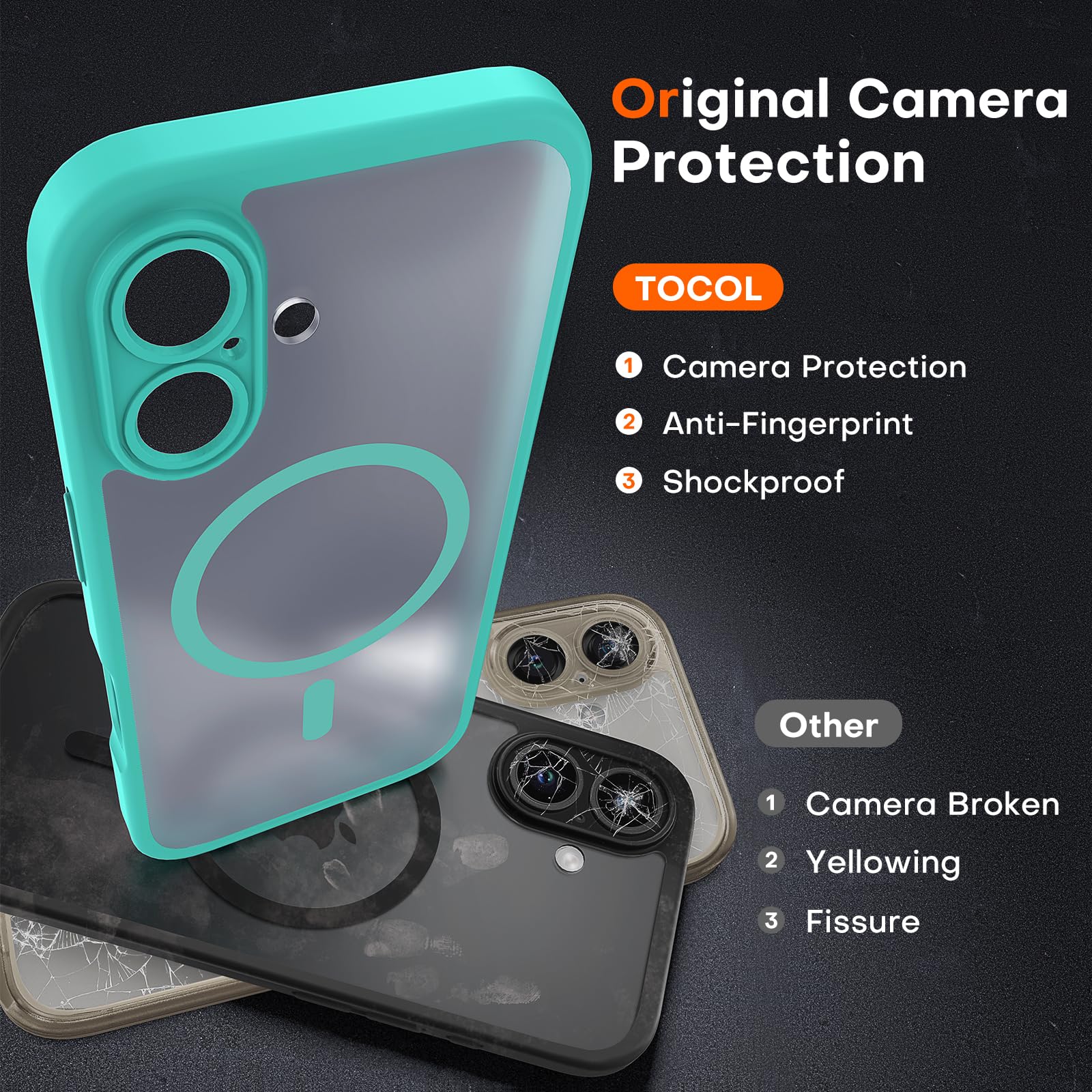 Designed for Camera Safety: TOCOL case for iPhone 16 upgraded camera surround protection, integrated with the case. The camera frame is 0.8mm higher than the camera lens, which can protect your most precious camera lens from scratches and collisions