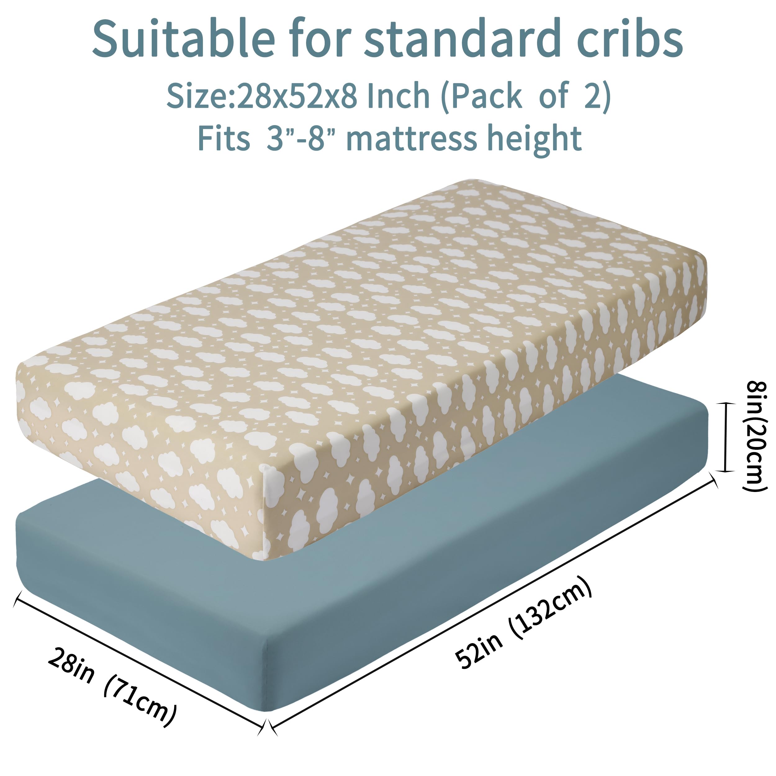 PERFECT FIT: The crib sheet measures 52" X 28" X 8". The elastic bandage wraps around to ensure that our crib mattress sheets fit your crib mattress snugly, not loose, but flat, giving your baby a comfortable bedding.