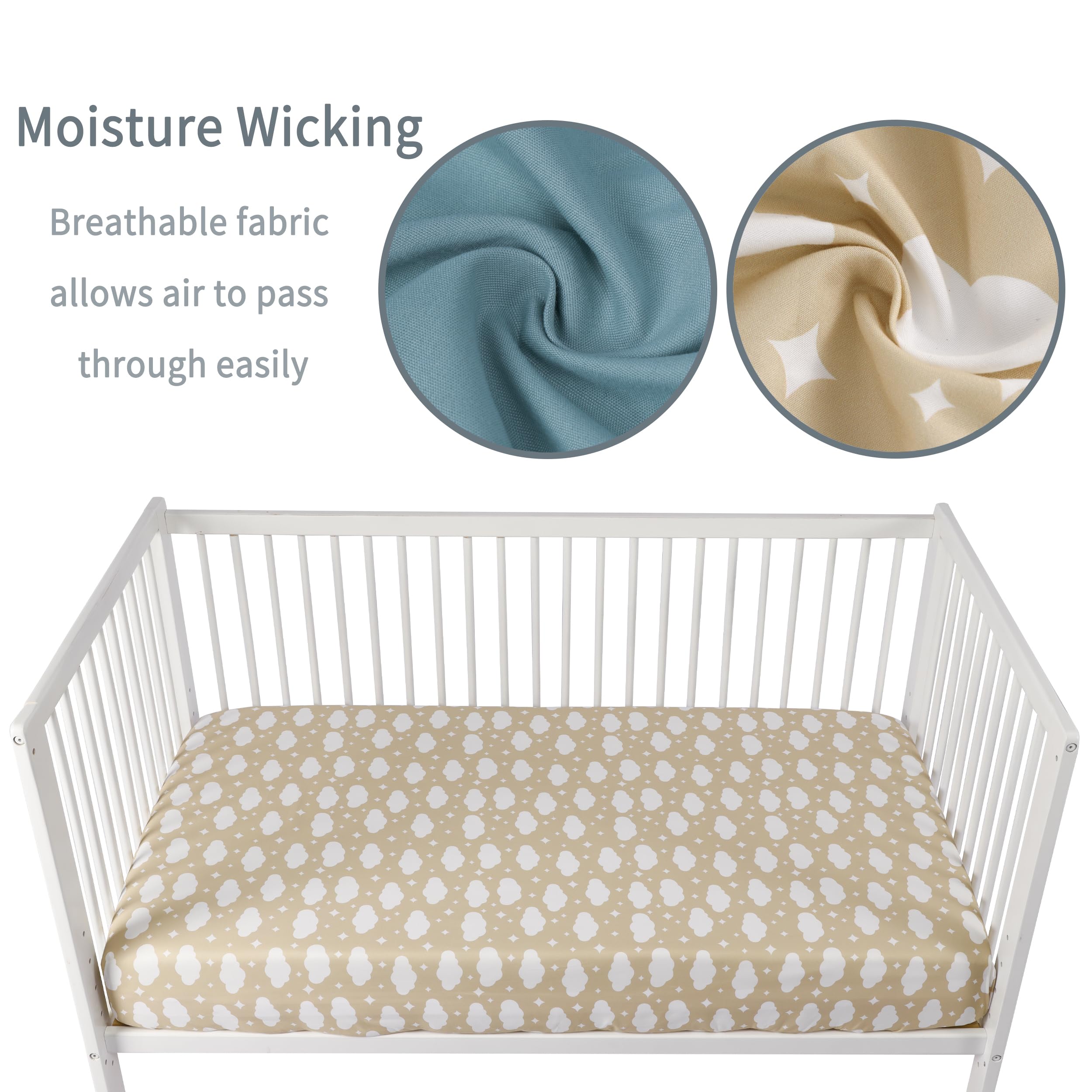 EASY CARE - This crib sheet is machine washable and retains its shape after washing, moms don't have to worry about the sheet shrinking, fading or pilling. Each pack contains two fitted crib sheets so you always have one on hand.
