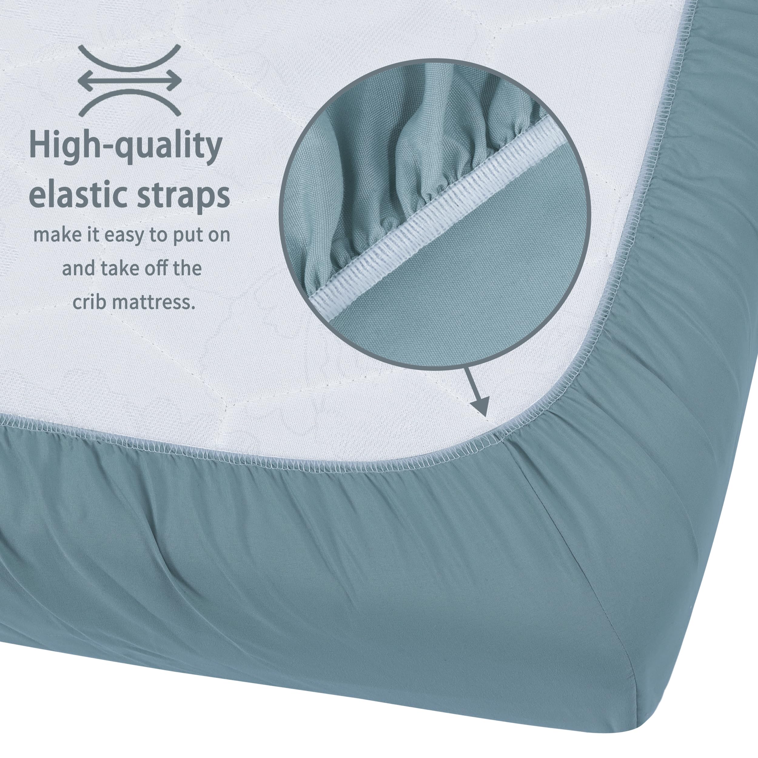 EASY TO SET UP - Each sheet comes with elastic straps that make it easy to remove the sheet from the crib mattress or take it off. Durable straps around the entire edge hold the crib sheet securely in place, preventing it from slipping off during sleep so you don't have to adjust the toddler sheet as often!