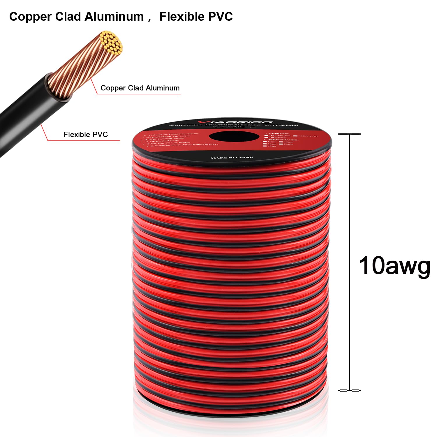 VIABRICO Low Voltage Wire : 10/2 gauge black and red speaker wire is ideal for low voltage applications such as 12V/24V DC circuit connections, home or car speakers, home appliances, single color LED light strip, lamps, automotive, boat ect.