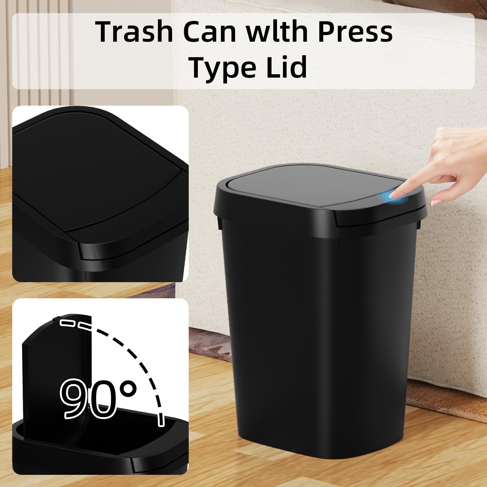 Pop-up design lid: The small trash can is design with a pop-up design lid, just need simply tap the button to open or closed the lid, making disposal a breeze. The lid itself is removable, making it easy to rinse out or put a liner bag inside.