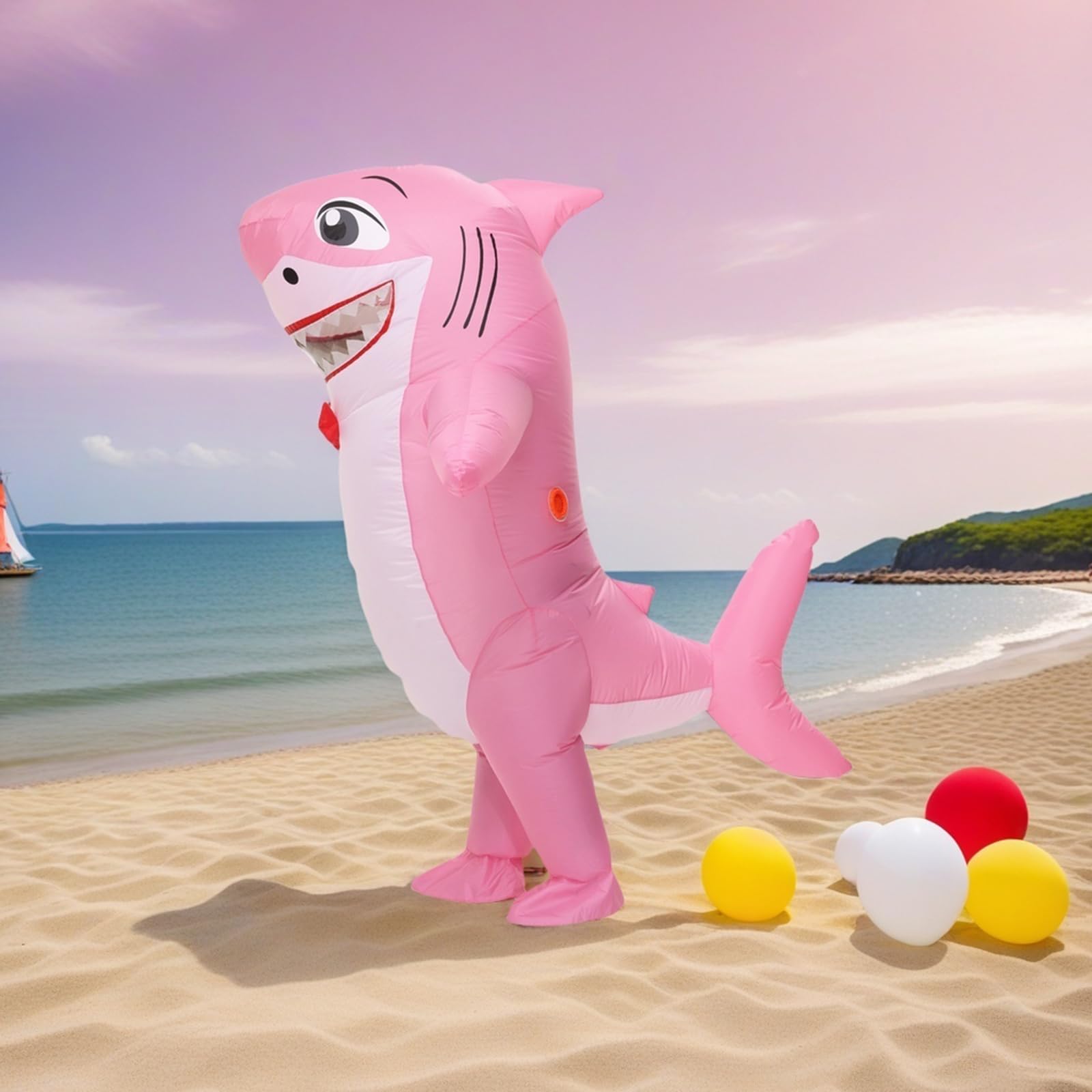 ZISUEX BLOW UP SHARK COSTUME ADULTS MATERIAL:Pink shark inflatable costume adult made of good quality Polyester ,shark inflatable costume soft and waterproof material design can be easily inflatable shark costume when the fan starts to work,pink shark costume have fun with your friends and parents