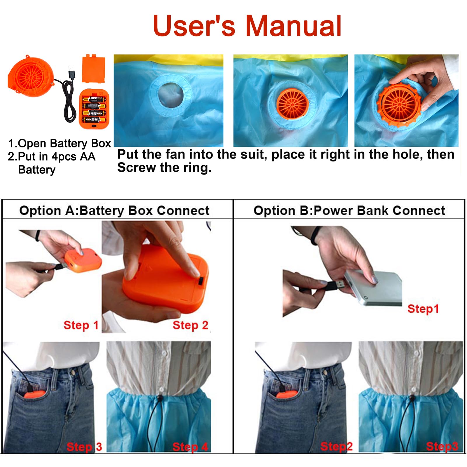 ZISUEX INFLATABLE SHARK COSTUME PACKAGE INCLUDE:Shark halloween costume come with 1 x pink shark inflatable costume,1 x usb mini fan blower(not including battery), inflatable shark costume mini fan requires 4 AA batteries and USB connected mobile power