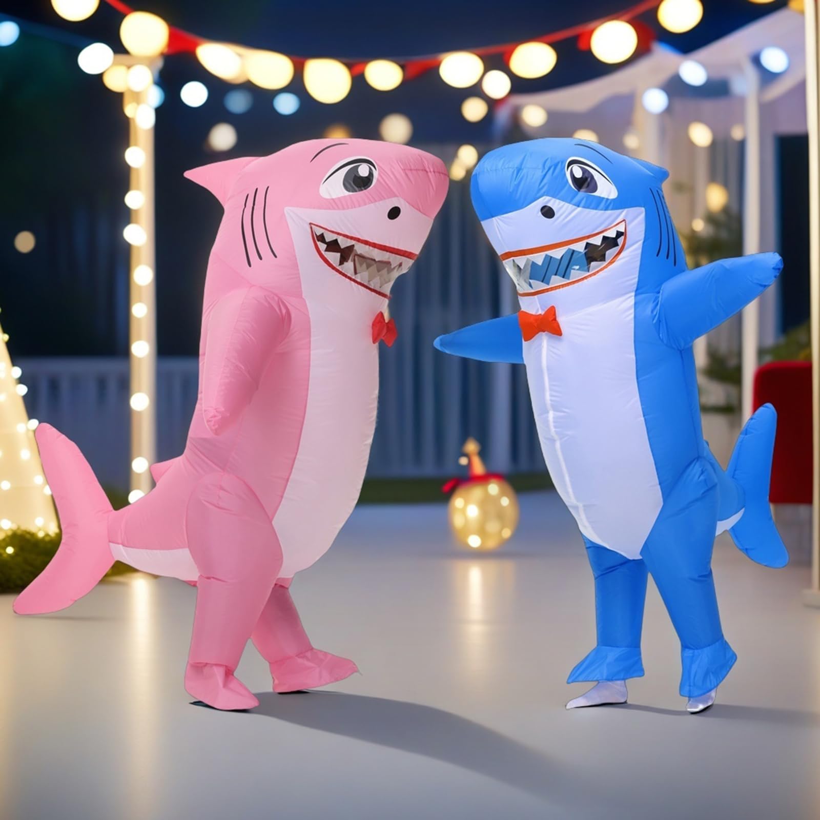 Description ZISUEX Shark Inflatable Costume Shark Blow Up Suit Sports Party Game Fat Cosplay Animal Fancy Dress Halloween Jumpsuit Christmas Gift Fancy Dress Cosplay Outfit Gift FEATURE: MATERIAL:100% Polyester COLOR:Blue,Pink,Yellow SIZE:suitable for the people 4.9ft (1.5M) to 6.2ft (1.9M). USB fan design:requires 4 AA batteries and USB connected mobile power,faster and more convenience to use. PACKAGE INCLUDE: 1 X Shark Inflatable Costume 1 X USB Mini Fan Blower (not include battery) you can walk, run, jump, ride when wear the inflatable costume,will have a pleasant weekend, holiday or party fun with your friend,parents