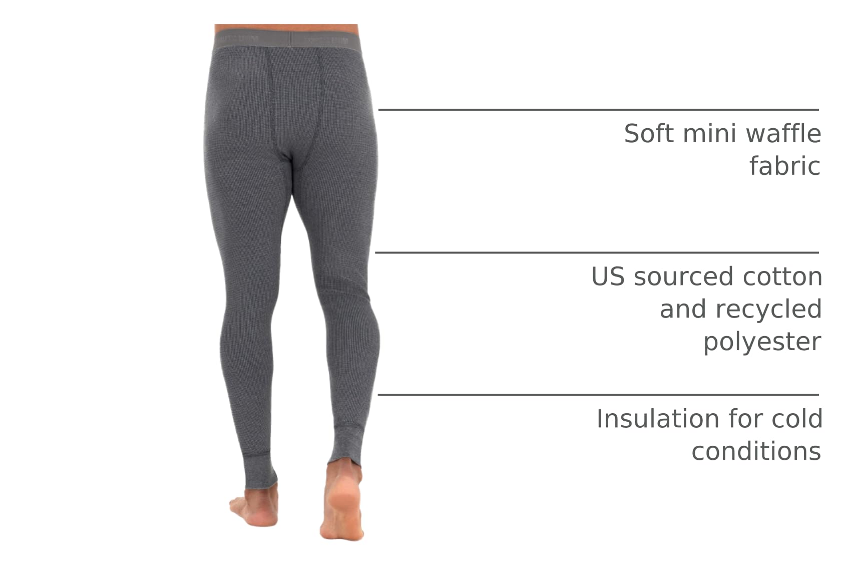 SOFT WAFFLE KNIT FABRIC FOR WARMTH AND COMFORT β Made from U.S.-sourced cotton and recycled polyester, this premium thermal bottom traps body heat while offering a soft feel against the skin