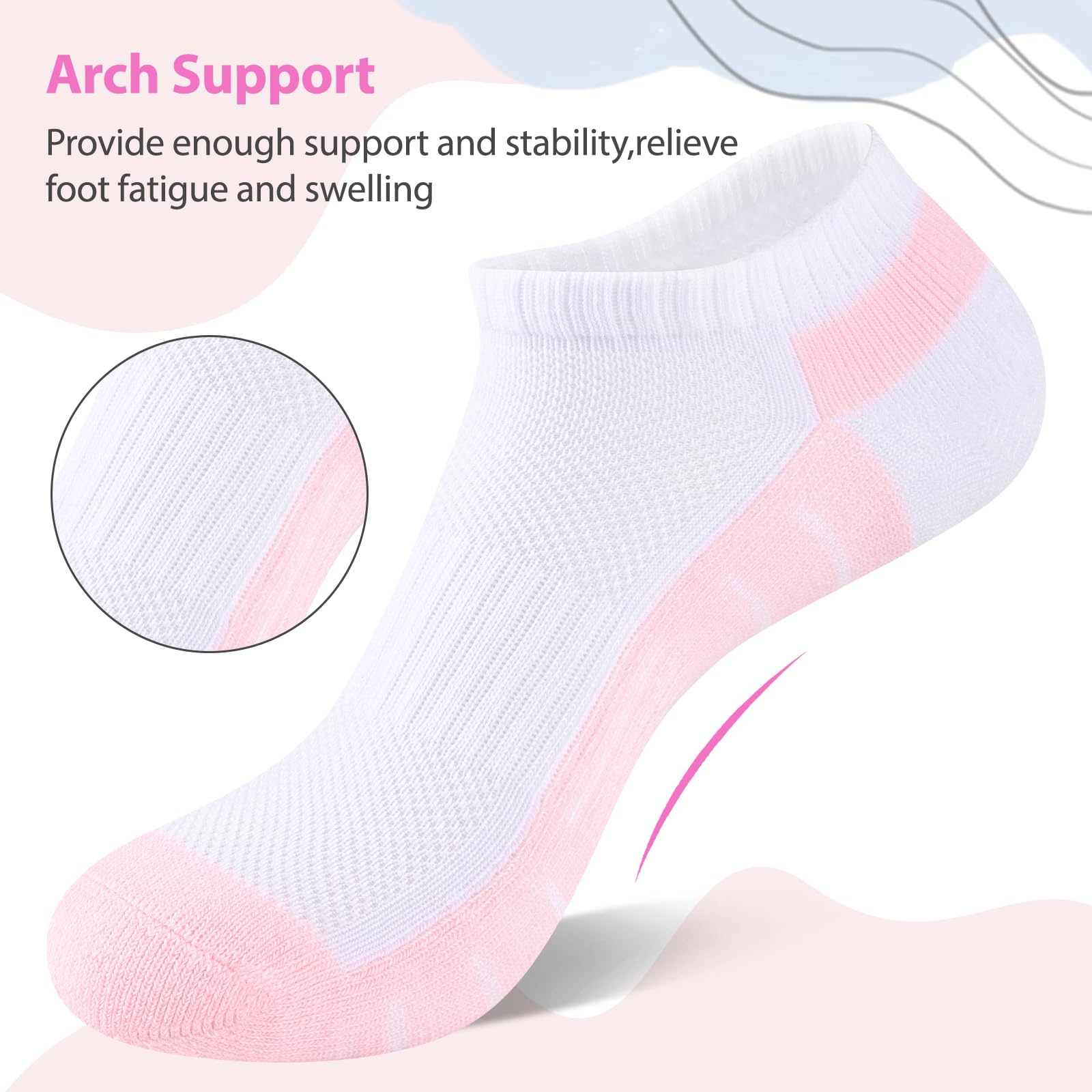 [ARCH SUPPORT & NON SLIP]:These running socks womens with elastic arch band to hug your feet well and keep ankle socks in place all day. The snug cuff can holds these womenβs sports socks tightly around your ankle to prevent slipping off when you move.