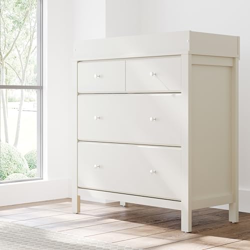 โGROW-WITH-MEโ 3 DRAWER CHEST โ REMOVABLE CHANGING TABLE TOPPER: Crafted of wood composites and laminated with a durable, easy-to-clean PU-coated surface; Pre-installed drawer tracks make for an easier assembly experience; Changing pad not included