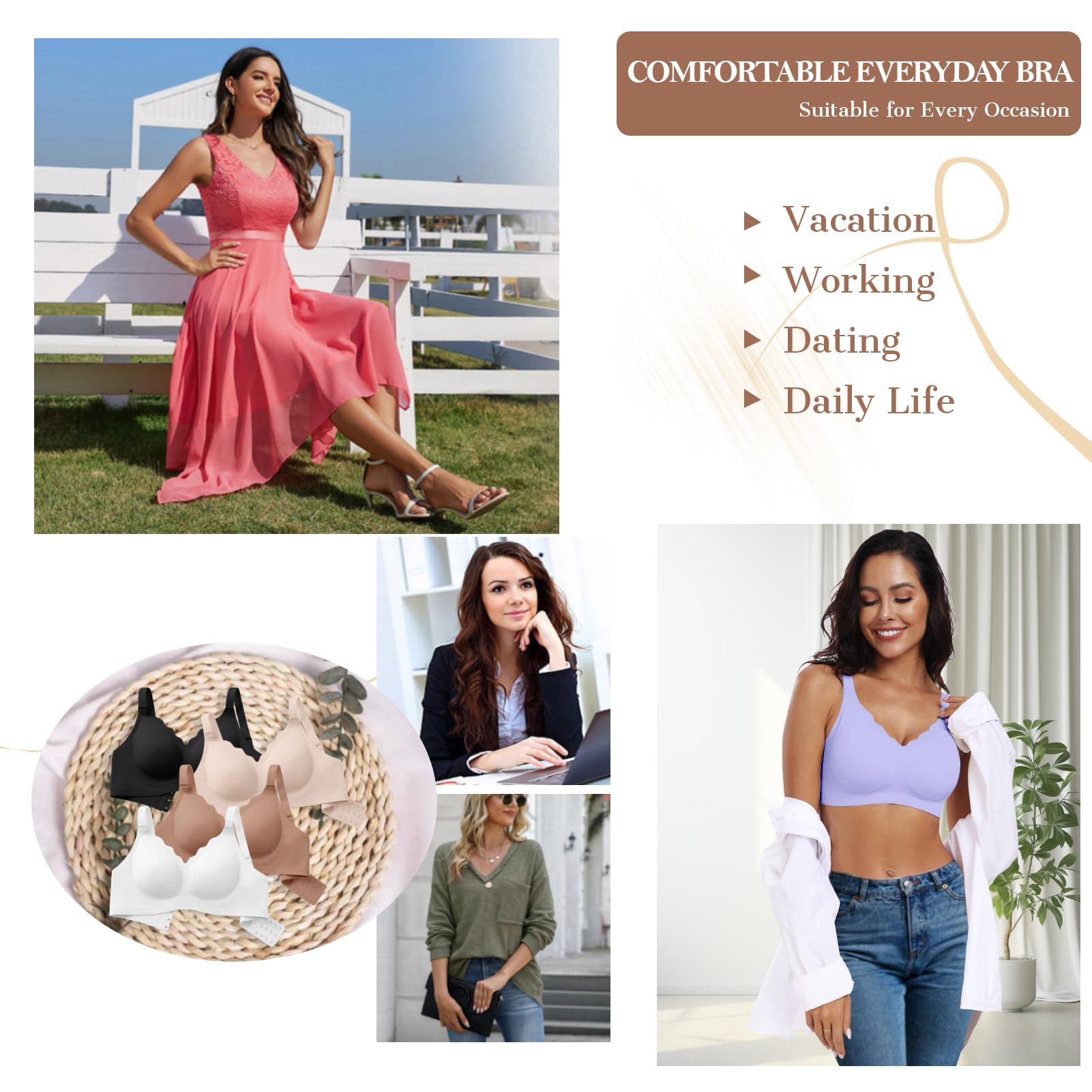 Adjustable Design - The bras feature adjustable shoulder straps and back closures, allowing you to customize the fit to your comfort level. The 4-row back hooks are designed to minimize back fat and provide additional support, ensuring a smooth and flattering silhouette. The widened straps offer effective support and stay put all day without digging into shoulders.