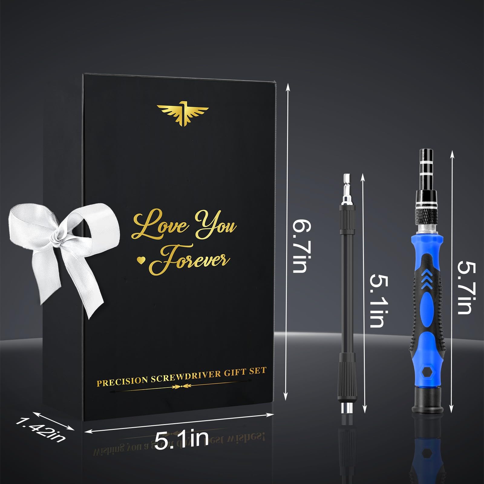 【Elegant Magnetic Gift Box】An Ideal Present for Any Occasion. Housed in a sophisticated magnetic gift box measuring 6.69 × 5.12 × 1.46 inches, this set is beautifully packaged with durable heavy-duty cardboard and premium paper wrapping. Its stylish and sturdy design makes it a perfect gift for Valentine's Day, birthdays, and anniversaries, tailored for DIY enthusiasts, tech lovers, and home repair pros.