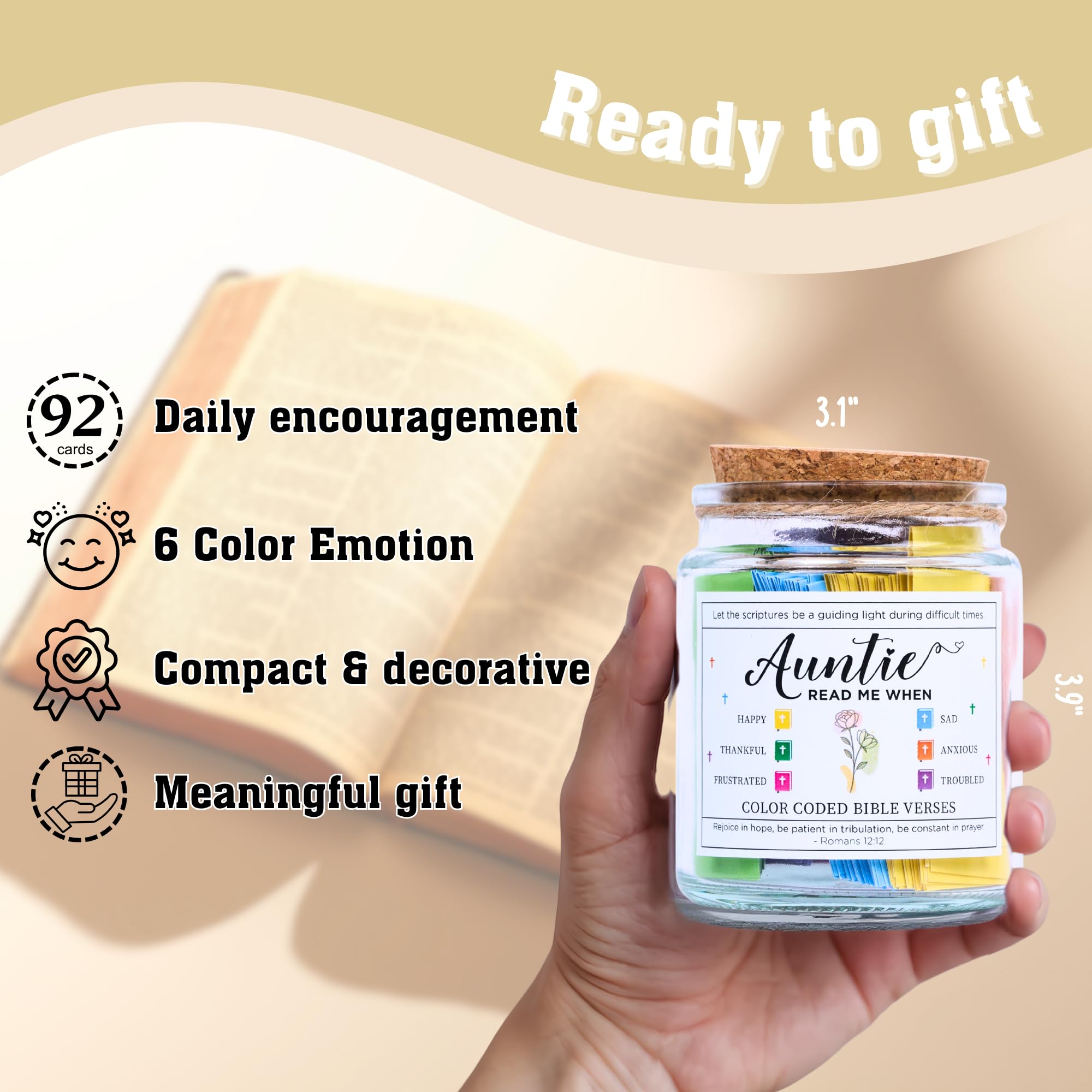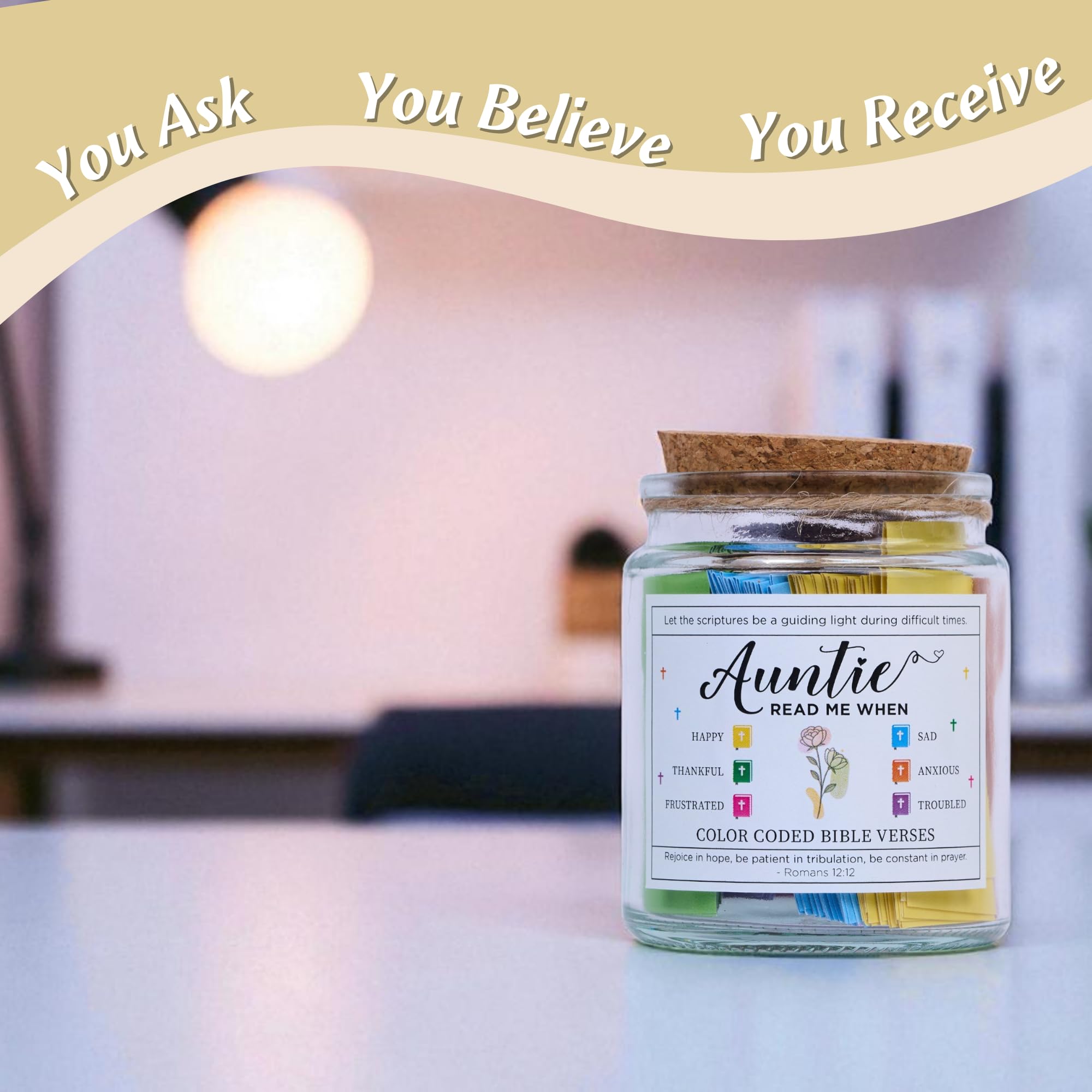 šø BIBLE VERSE JAR FOR AUNTIE ā Celebrate the woman who loves you like a mother and treats you like a friend! Designed specifically for your favorite Auntie, this "Read Me When" jar is a daily dose of spiritual sunshine. Whether she is starting her day or needs a mid-day pick-me-up, she can pull a scroll to feel Godās joy. Itās a beautiful way to tell her: "Auntie, you are a blessing to my life, and I cherish you!"