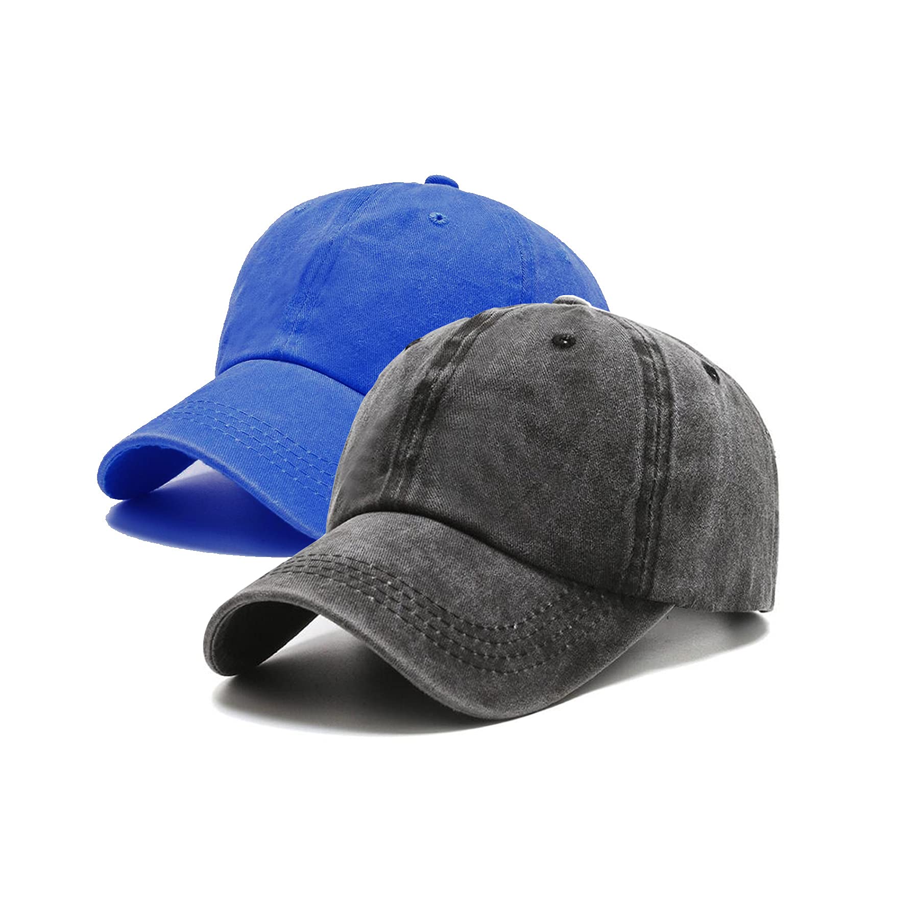 Description Features: Vintage washed distressed cotton baseball cap, classic and timeless style. Soft fabric in washed style, 99% cotton made, soft, lightweight denim fabric, make sure better comfort wearing. Dad Hat, Low Profile UNCONSTRUCTED. Adjustable metal buckle back closure, great fit for most head sizes ensure comfort at all times. Reinforced Professionally Hemming-Stitch, lightweight but durable makes baseball cap can ensure longtime use. Adjustable Size - One Size Fits Most: Head Circumference: 20.8"-25.2"(Can Be Adjusted),Hat Height: 4.3",Hat Along: 2.8". Rear opening design fits women's low ponytail comfortably. Wide Applicable Occasion: The unisex design makes it fits for men and women for daily, sports, fishing, travel, outdoor activities, outing, etc. great idea for mother’s day, father’s day, birthday, Christmas gift for your family and friends. The baseball cap adopts high quality cotton cloth with exquisite embroidery, Comfortable, Breathable, Lightweight and Durable.
