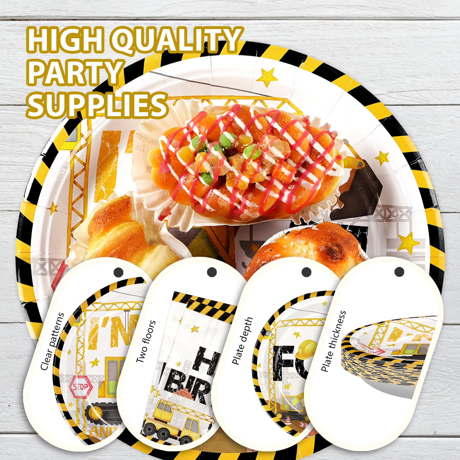 Premium Material: The construction birthday disposable plates are made of heavy duty paper. 4th birthday construction party plates are designed to be strong enough to hold a full plate of food without folding and tearing. Napkins are soft and absorbent to ensure durability (Tips:Please do not microwave these products)