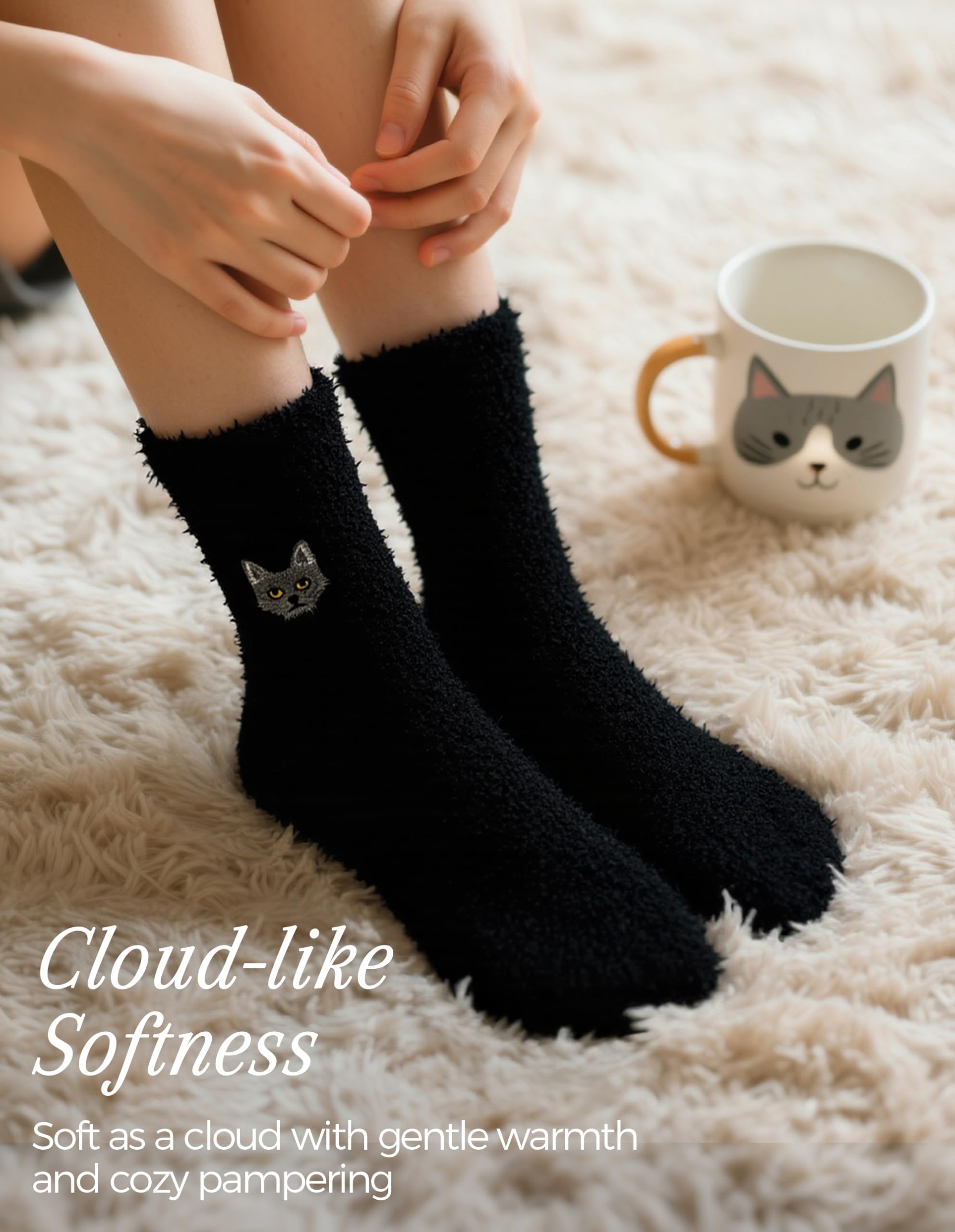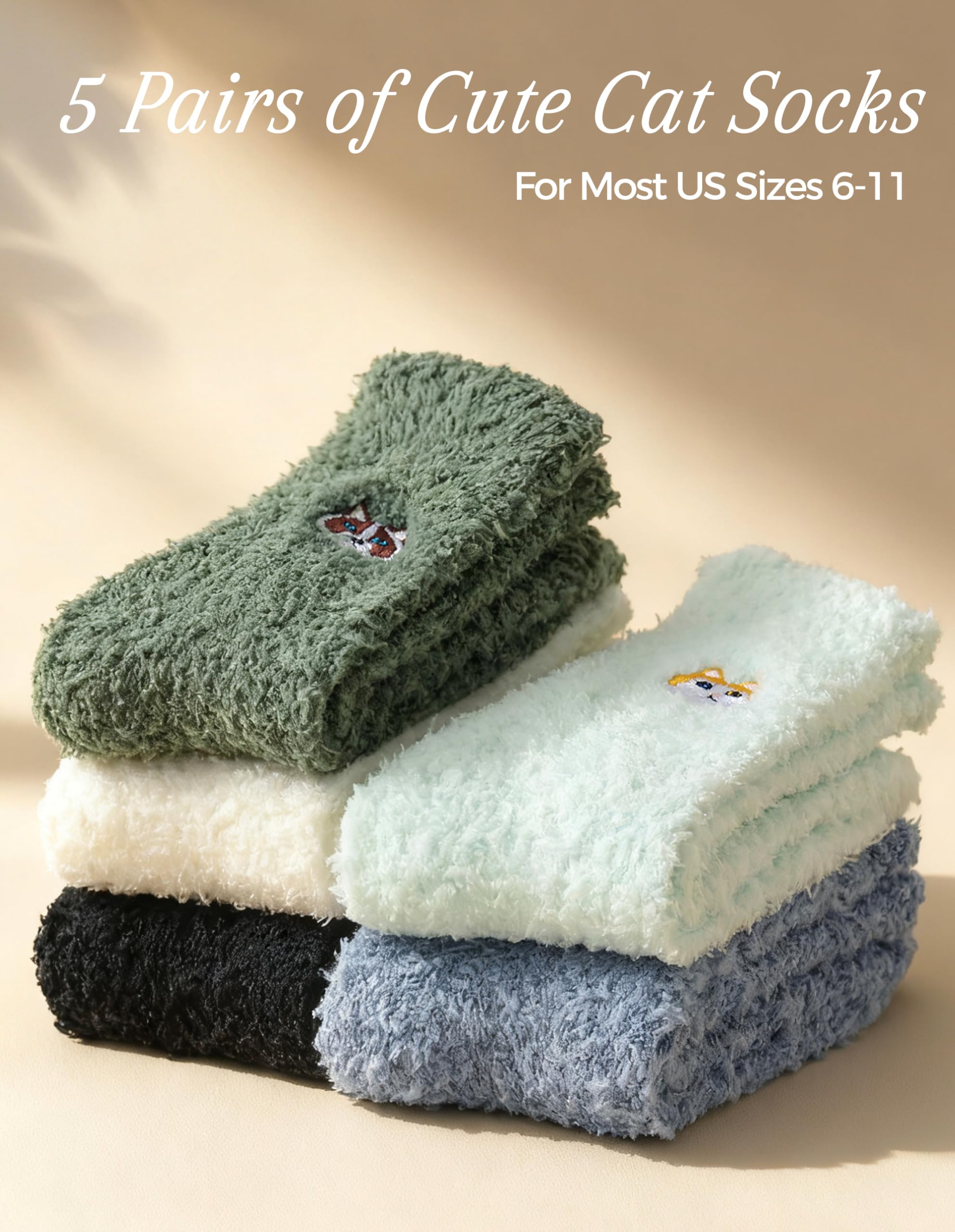 Playful Cat Lover Gifts: Delight women and teen girls with 5 pairs of ultra-adorable designs embroidered cat socks; these socks are the fluffiest, coziest stocking stuffers, and charming Christmas surprises for every cat lover