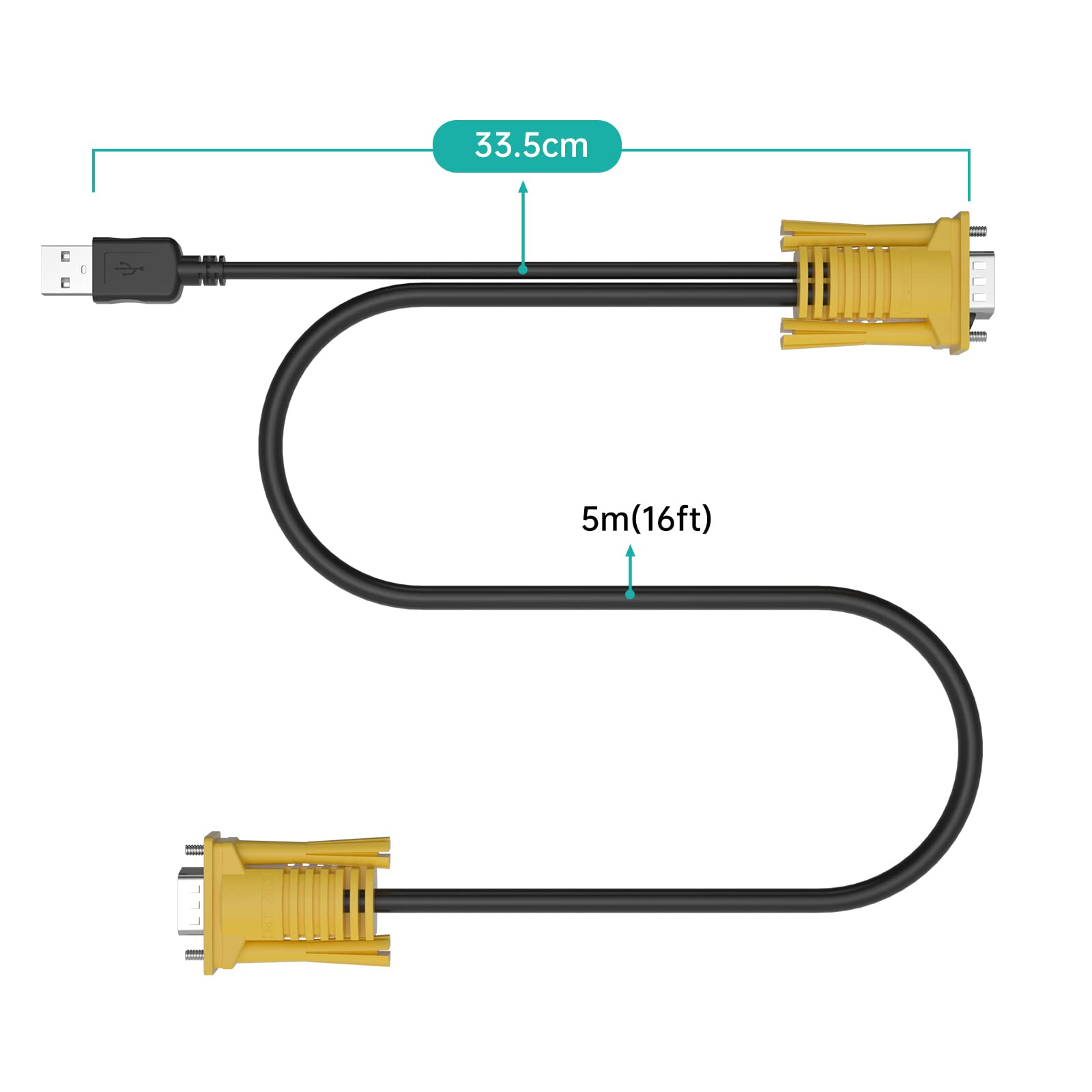 ✅LENGTH: This KVM cable is 15 feet (5 m) ; 2-Packs.