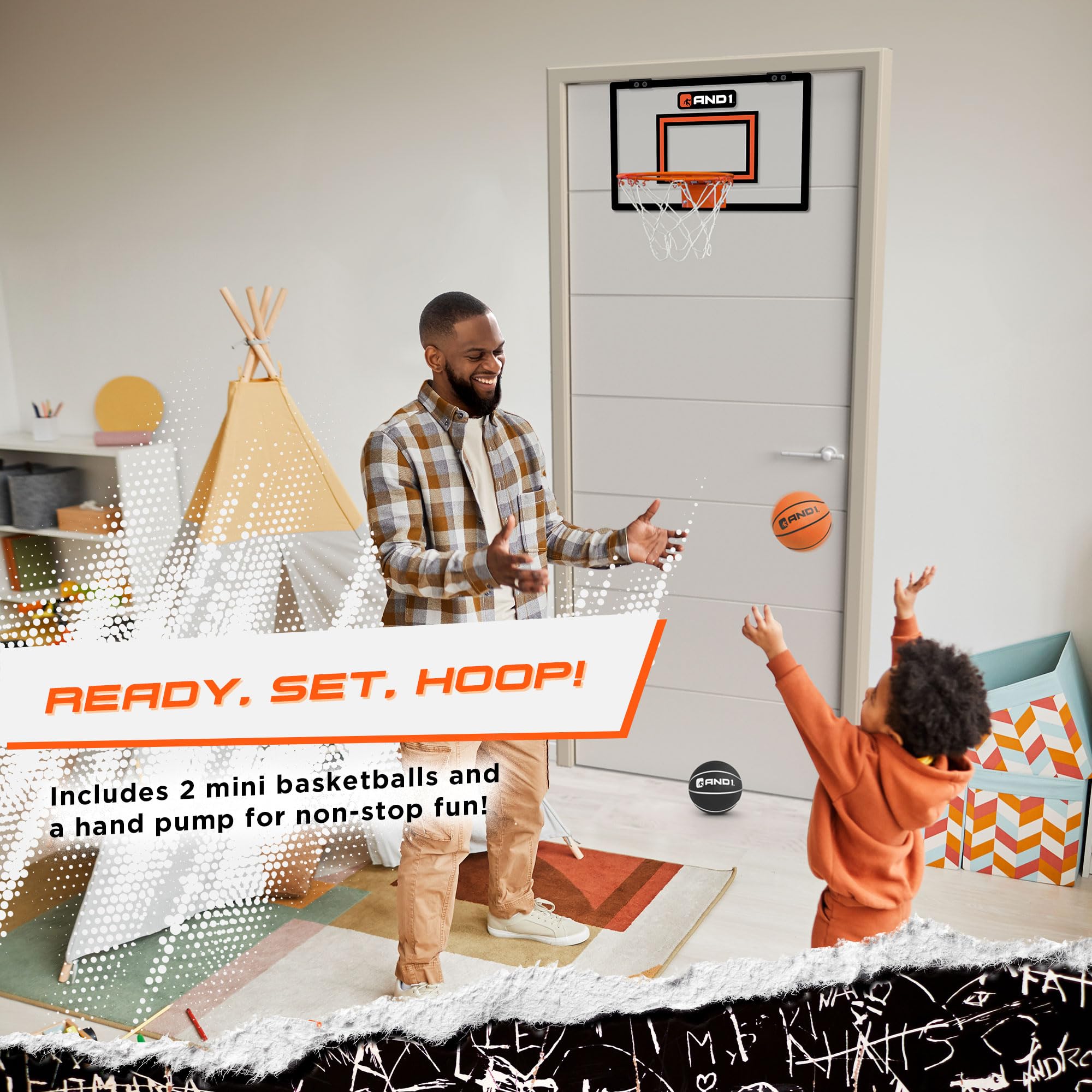UNLEASH YOUR INNER BALLER ANYWHERE: The AND1 Over the Door Mini Basketball Hoop caters to all ages, from toddlers to adults. It transforms any space into an indoor basketball arena, making it the go-to choice for mini basketball and indoor basketball enthusiasts.