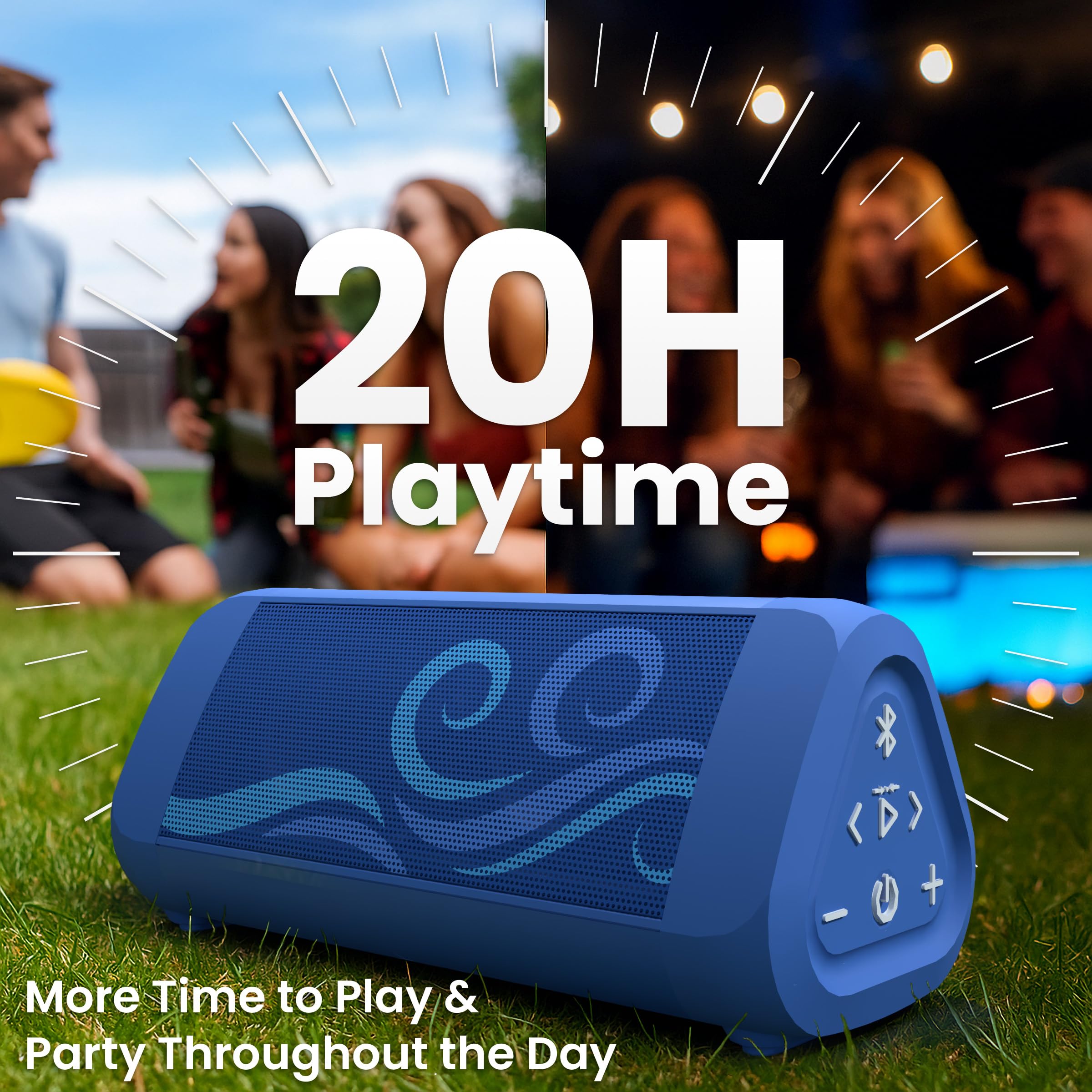 POWERFUL SOUND - This portable speaker is made to travel, with a 20-hour battery life that lets you play all day. Two precision neodymium drivers and a proprietary bass radiator pump out crystal-clear high and mid sound, with bass beyond its size.