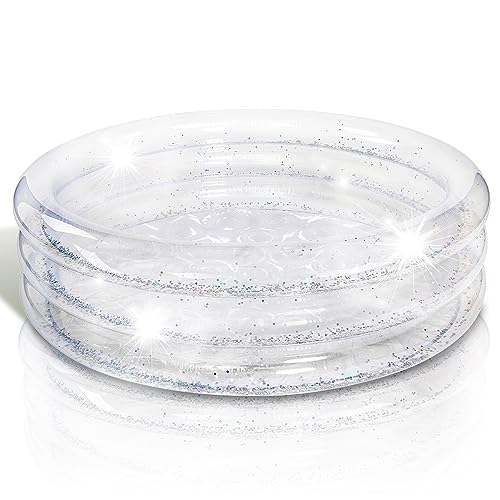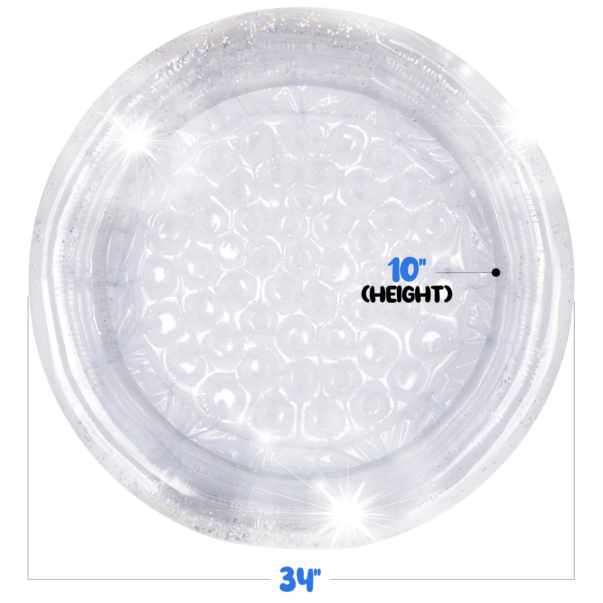 THE COMPLIMENT-GETTER: A backyard pool you’ll want to show off. No jarring colors here. Transparent, with chunky iridescent silver glitter inside, our splash pad captures the kids’ imagination while blending into your space.