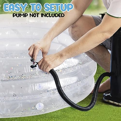 EASY TO INFLATE: Just bring out your pump (not included) and inflate the swimming pool for kids in minutes. It features 3 air valves for each layer and a fourth valve for the bottom. This makes deflating it for storage quick.