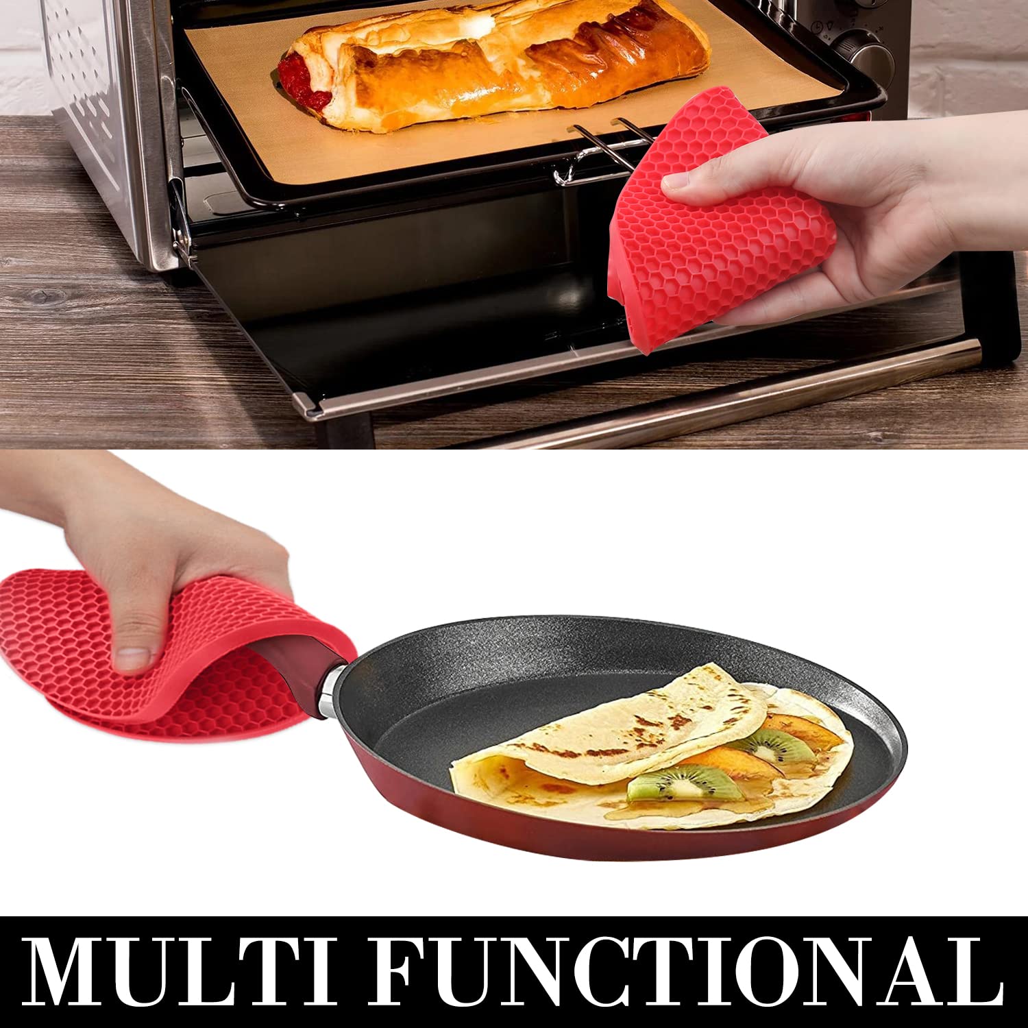 đăPREMIUM MATERIALă:Red trivets are made with 100% BPA-free food-grade silicone, flexible, durable, and non-stiff; the silicone potholders are soft enough to grip hot pots and pans. It provides a safe use when touching hot foods and tableware.
