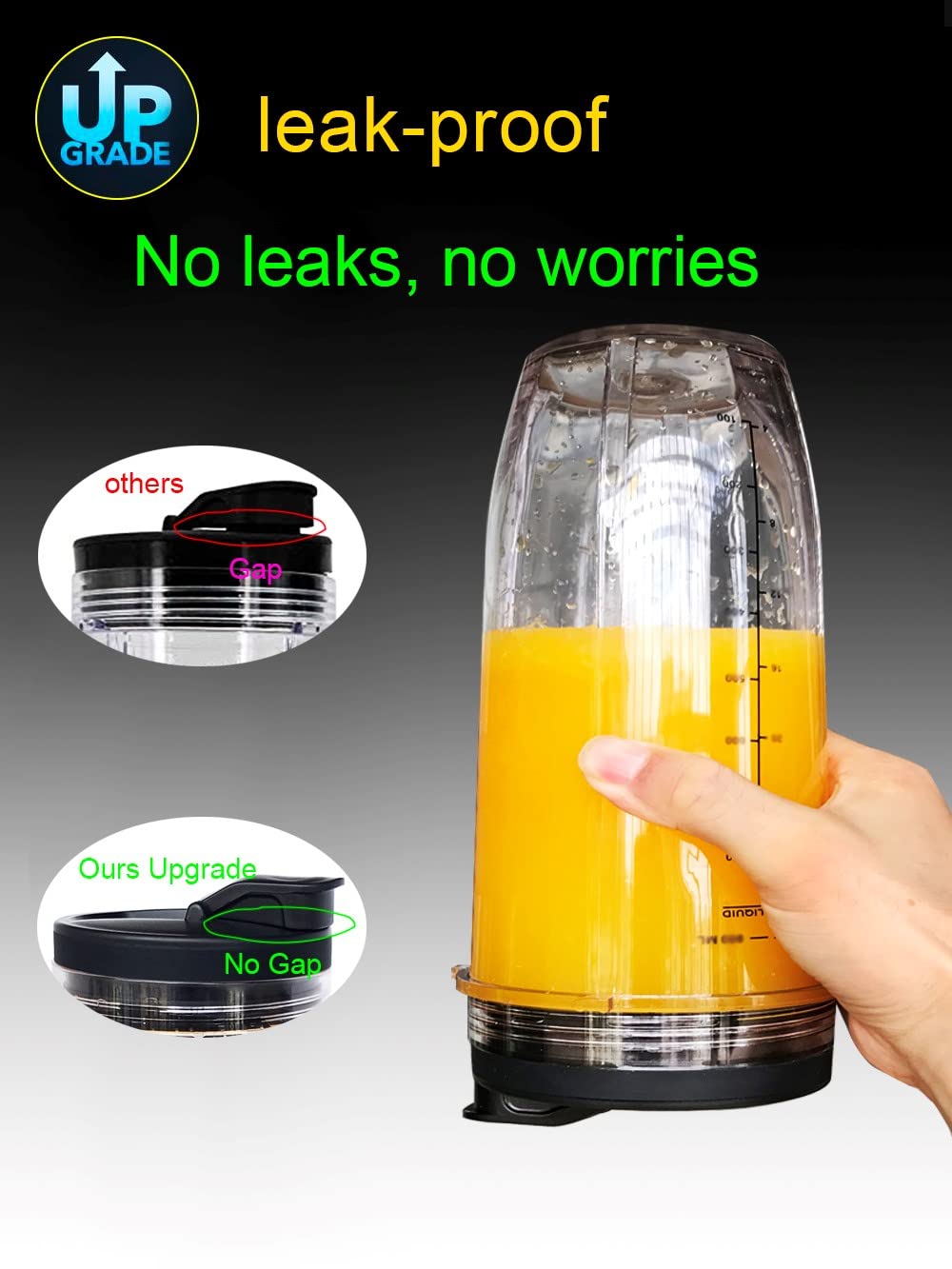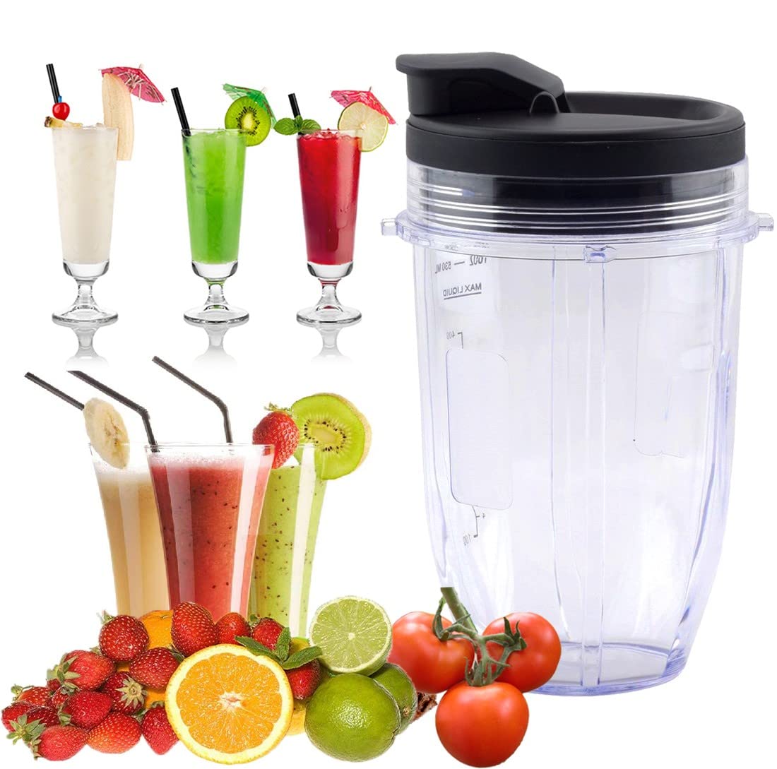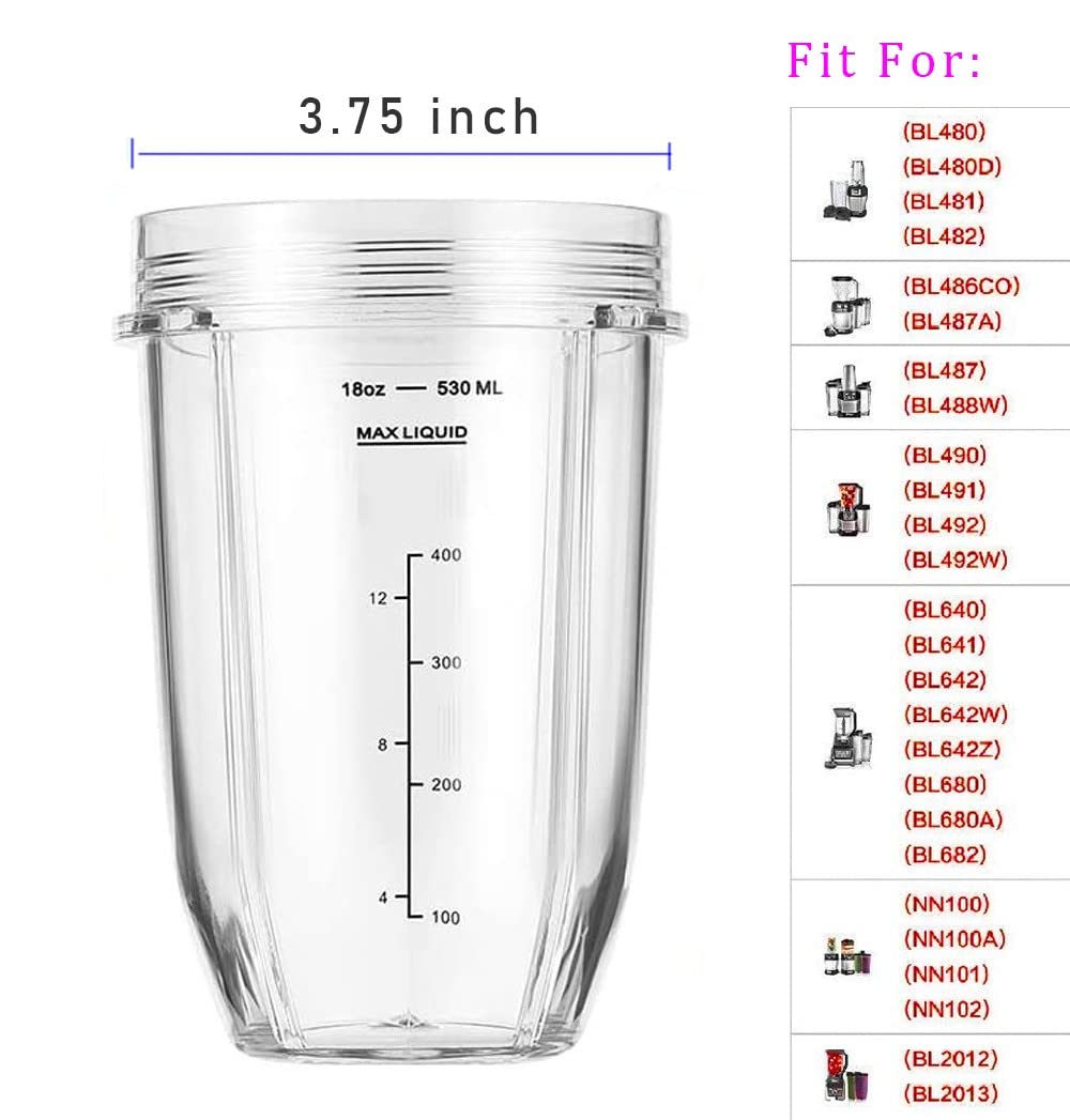 Replacement 18oz cups fpr Nutri Ninja Blender with Sip & Seal Lid For BL450 BL454 BL456 BL480 BL482 BL640 BL642 BL682 BN751 BN801 Foodi SS101 SS351 SS401 Ninja Blender Auto IQ Blade, 2-Pack