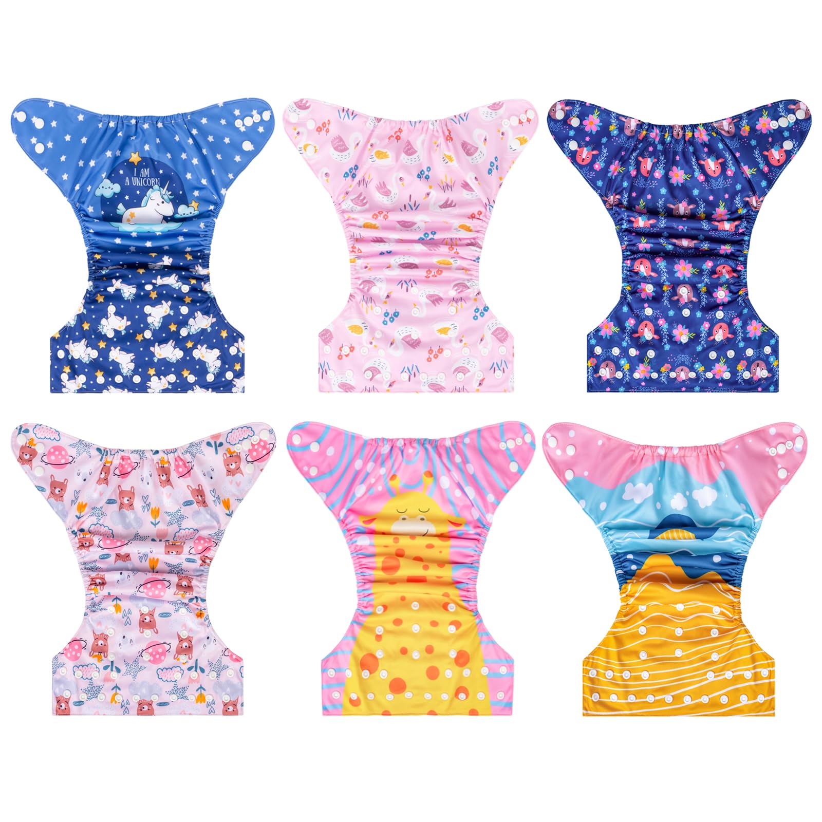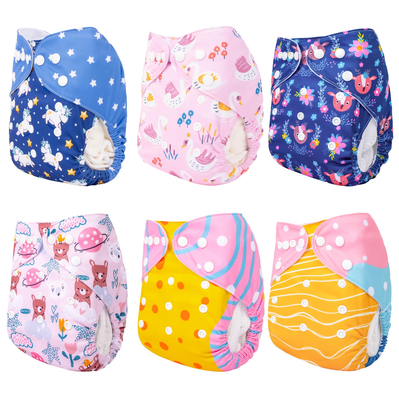 PACKING LIST: This pack includes six diapers and 12 inserts, can keep your baby dry and comfortable.