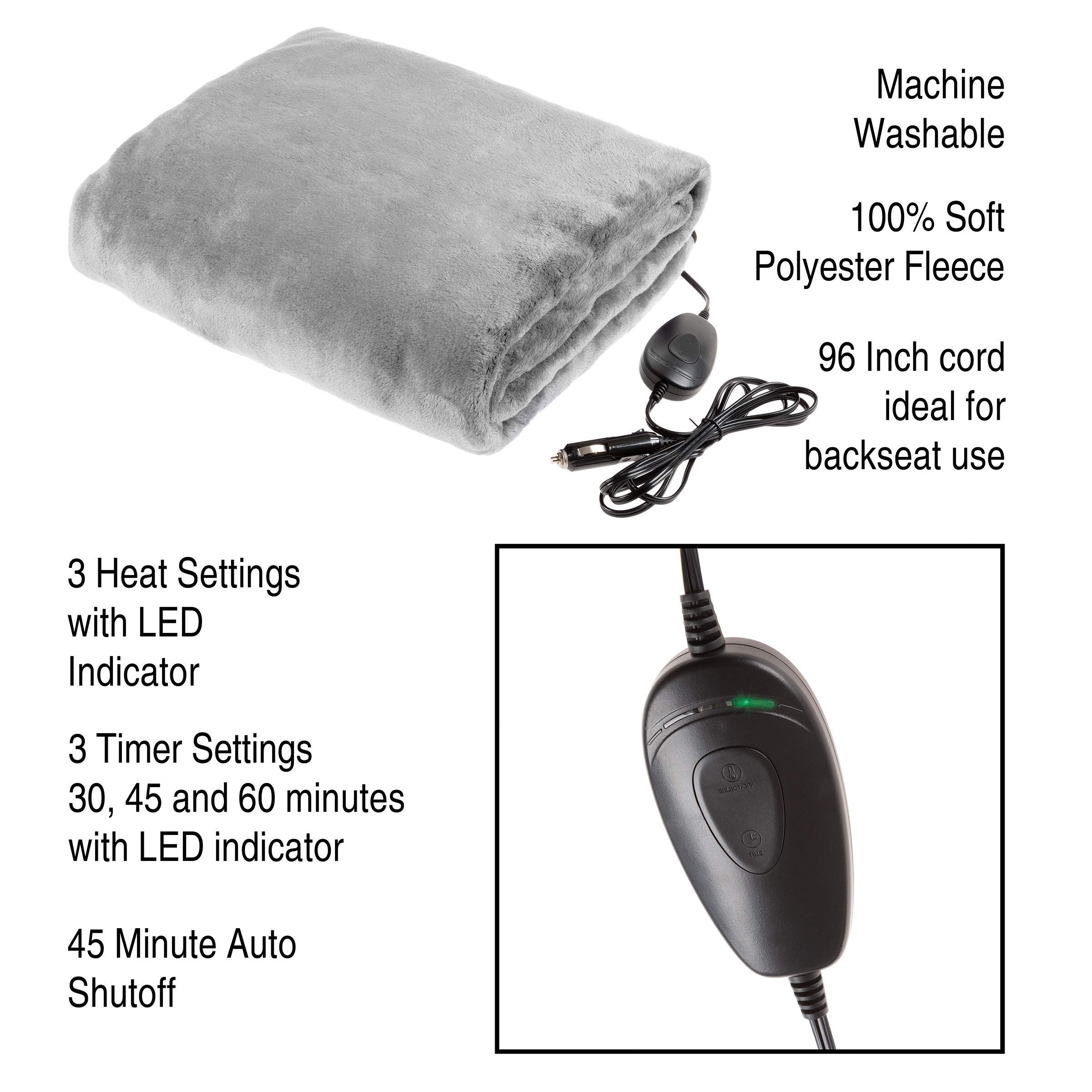 LONG CORD - Equipped with a 60-inch-long cord, this heated throw blanket can reach most seats in your vehicle. This cozy blanket is an ideal way to maintain comfort during long winter drives or cold travel conditions.
