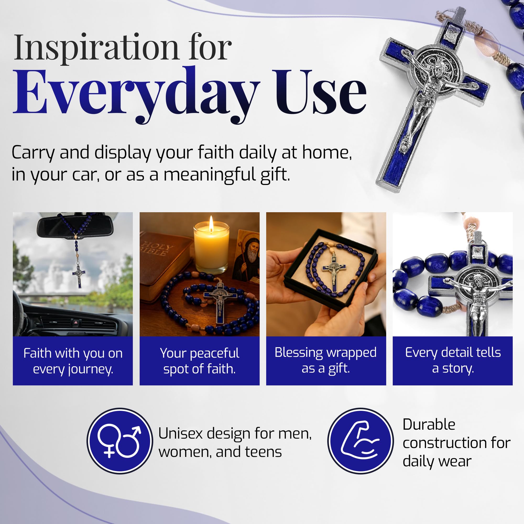 Versatile and durable for everyday use — smooth feel and sturdy crucifix for prayer, travel, and display; unisex rosary necklace for men, women, and teens; rosario unisex, collar con cruz, rosary beads for car rearview mirror, accesorios católicos, rosario para viaje