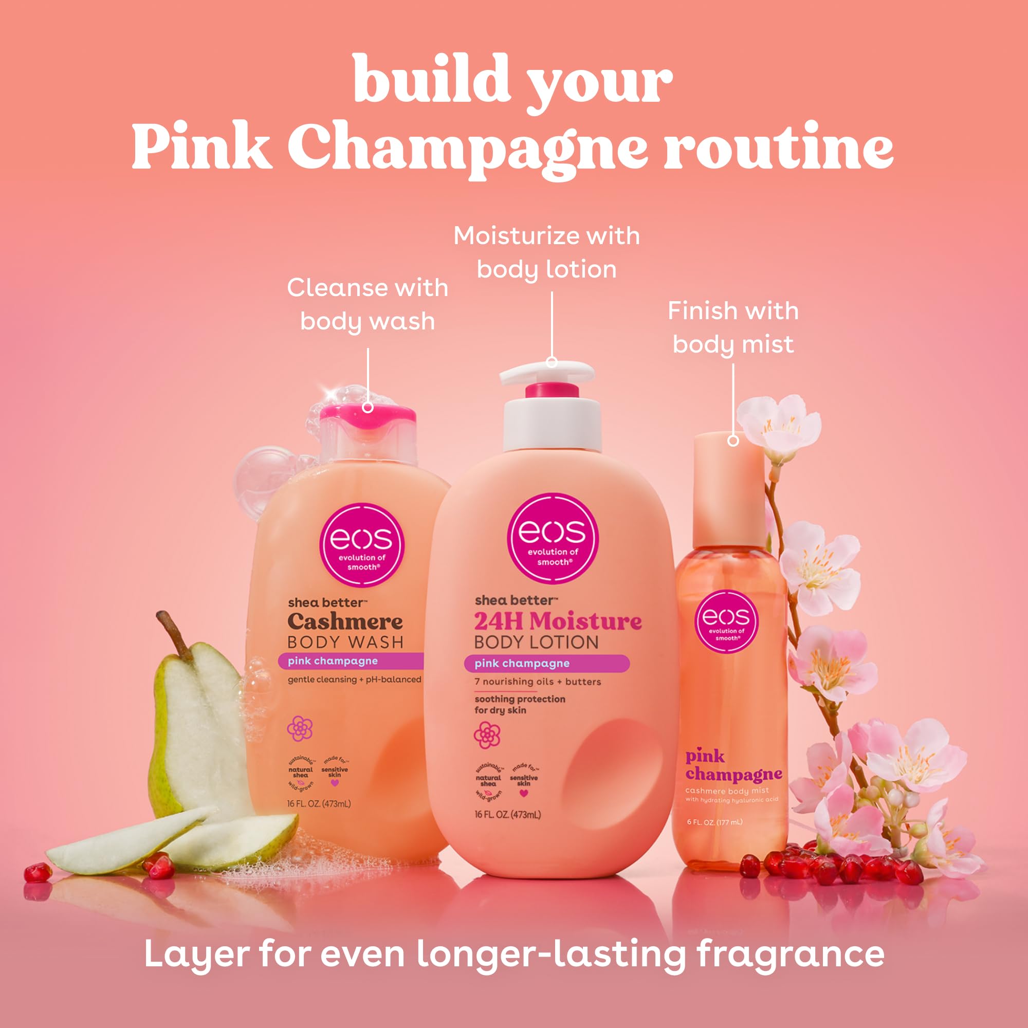 eos PINK CHAMPAGNE BODY LOTION: Liberally apply eos lotion to just-cleaned skin - we'll do the rest. Pro tip: Layer this with your favorite fragrance for an enhanced experience