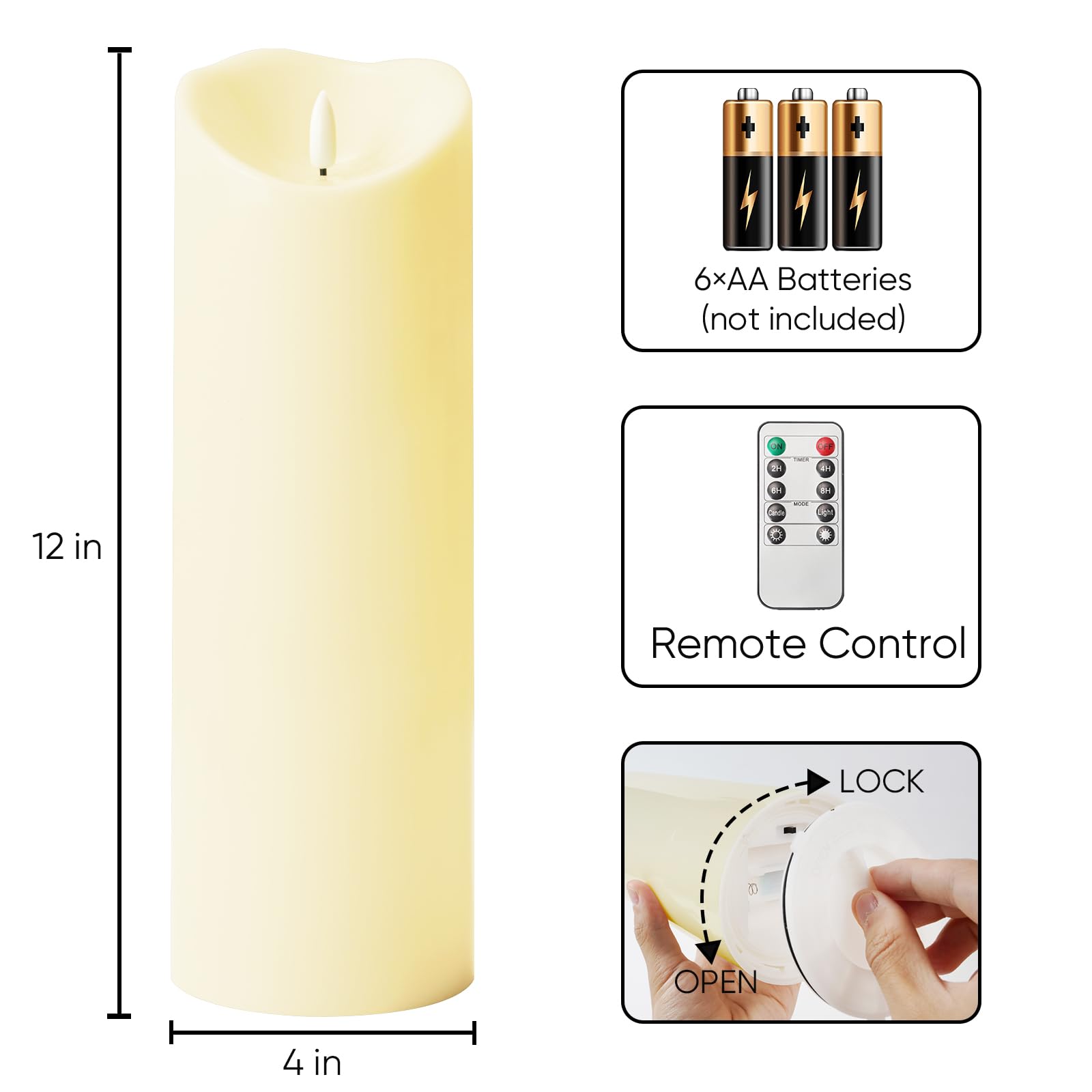 Long-Lasting Battery Life: Each candle runs on 3 AA batteries (not included), delivering 500+ hours of continuous glow or up to 45 days using the 6H timer with high-grade batteries. A cost-effective, low-maintenance lighting solution for extended events or daily decor.