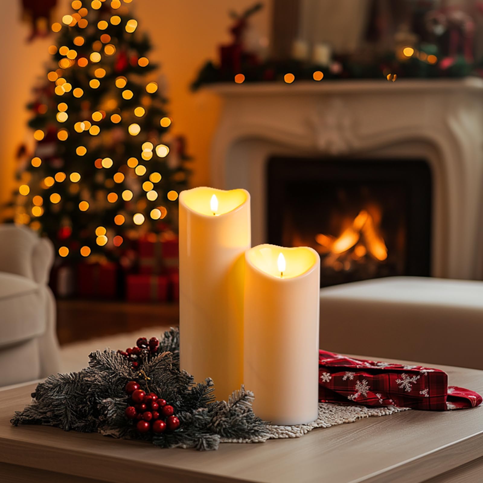 Smart Remote Control & Timer: Enjoy effortless operation with the 10-key remote, offering 2H/4H/6H/8H timer settings. The candles automatically relight daily at your chosen time, eliminating manual adjustments. Switch between flickering or steady glow modes and customize brightness to suit any mood.
