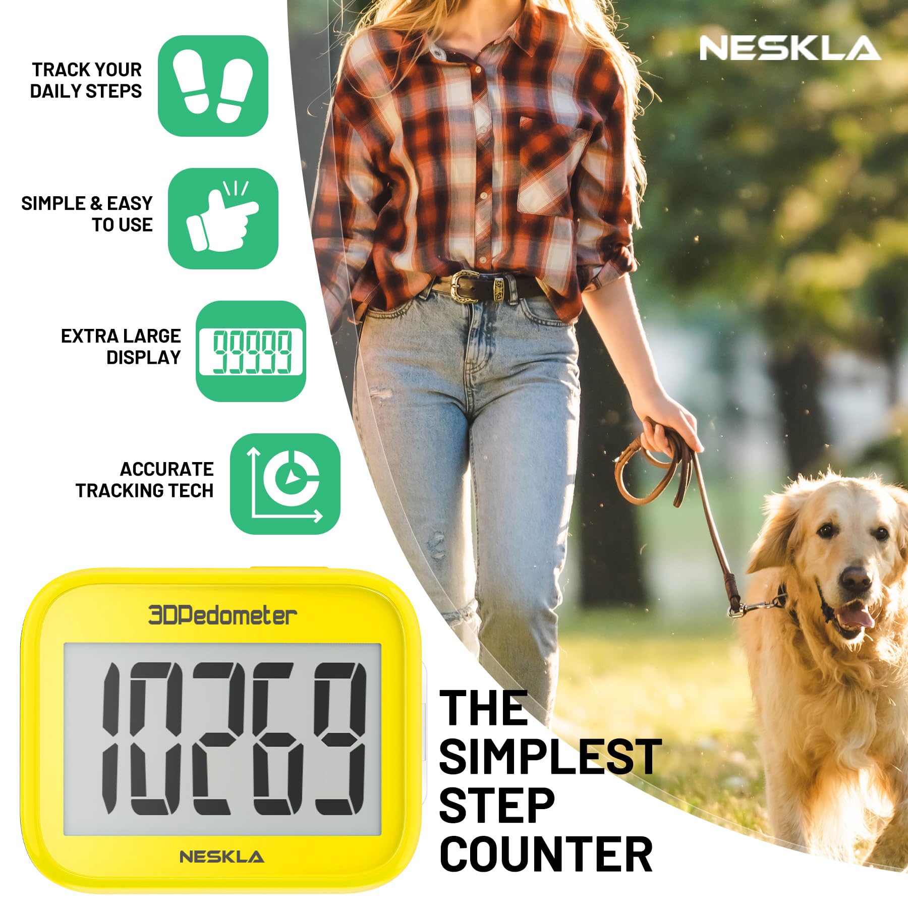 ACCURATE COUNTING: Pedometer has advanced 3D Tri-Axis Sensor technology, so it is much more accurate than most pedometers. Simple functions and design makes it user friendly for men, women, kids, seniors