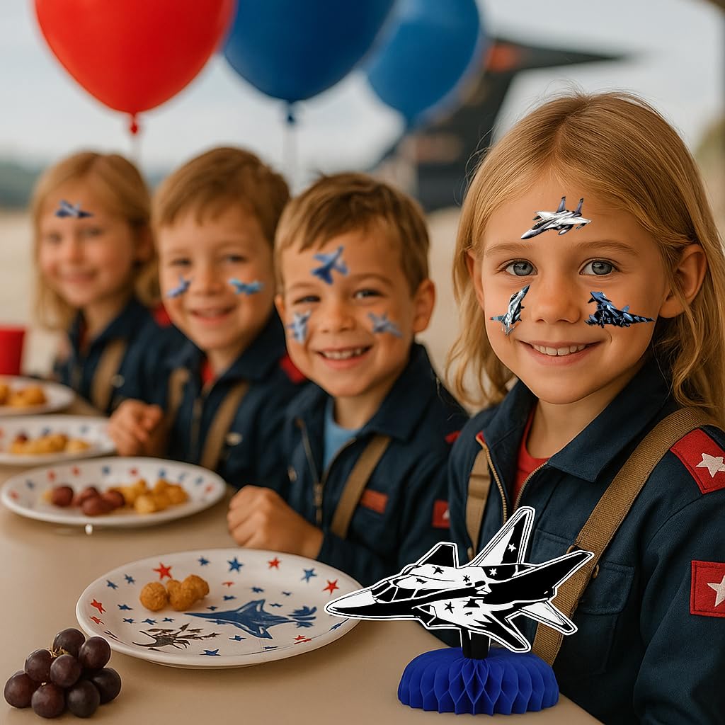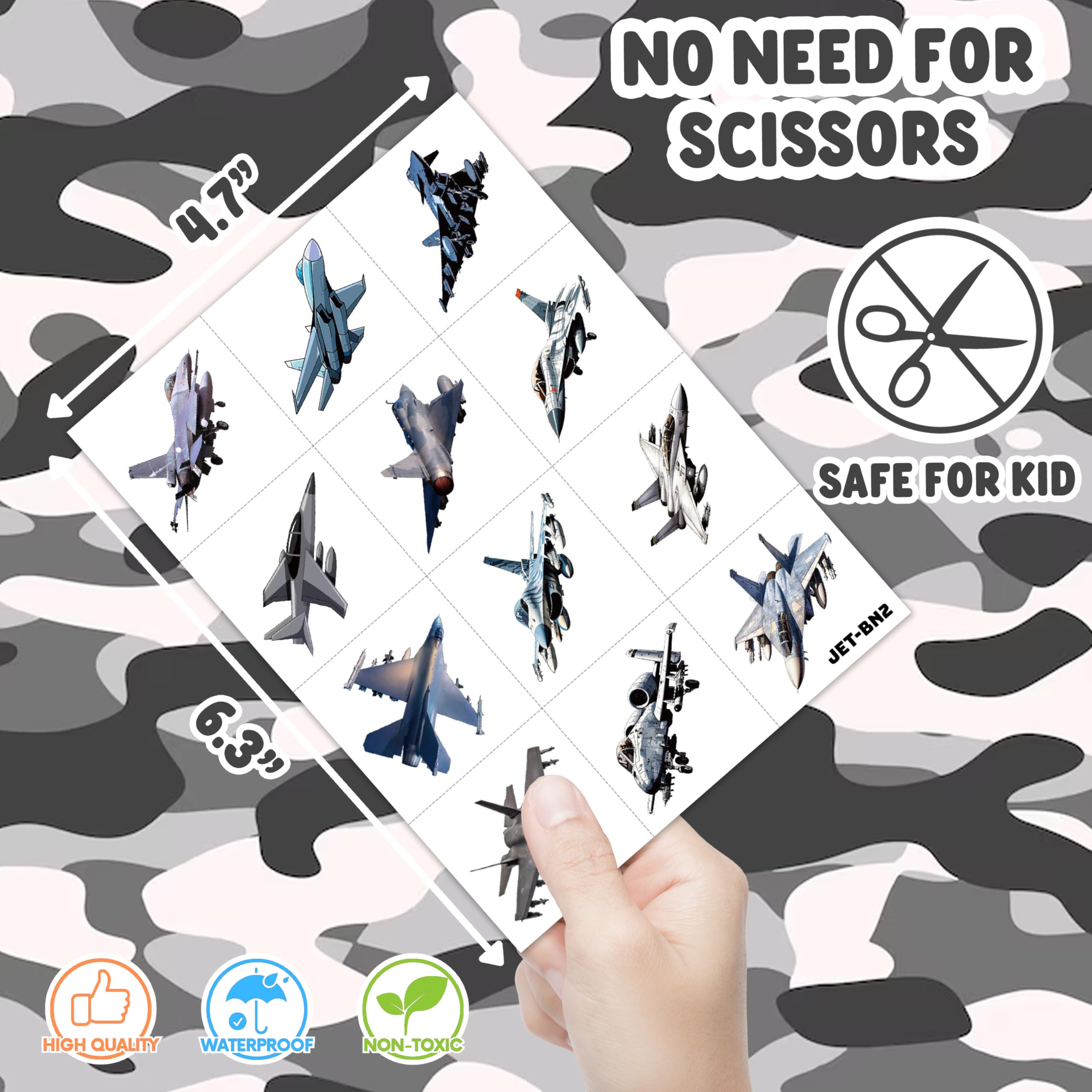 ✈️UNIQUE DESIGNS: Many children aspire to be skilled pilots.Our JET tattoos provide a selection of exciting fighter JET designs to help your children establish objectives ahead of time, so come on! Plan an amazing birthday party.