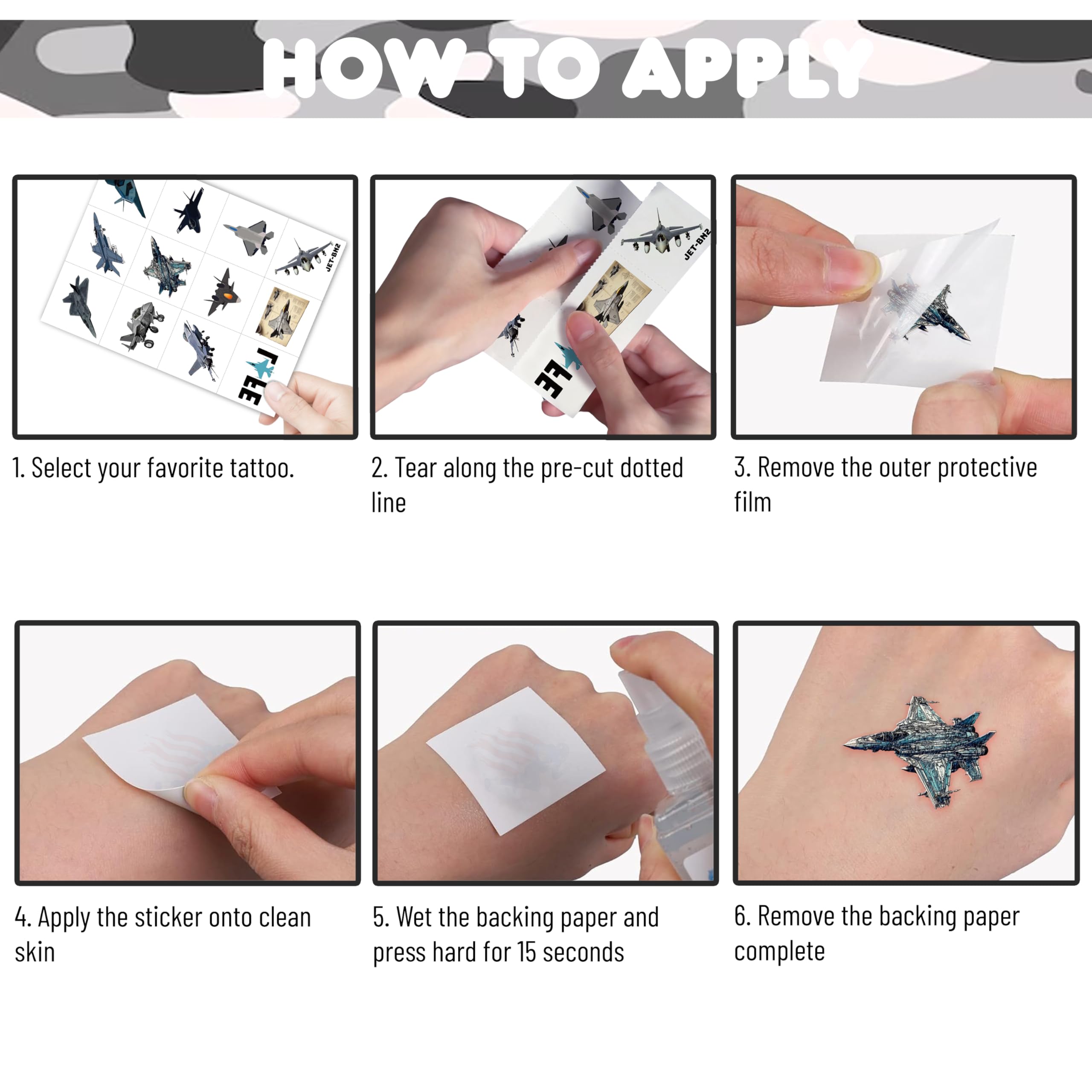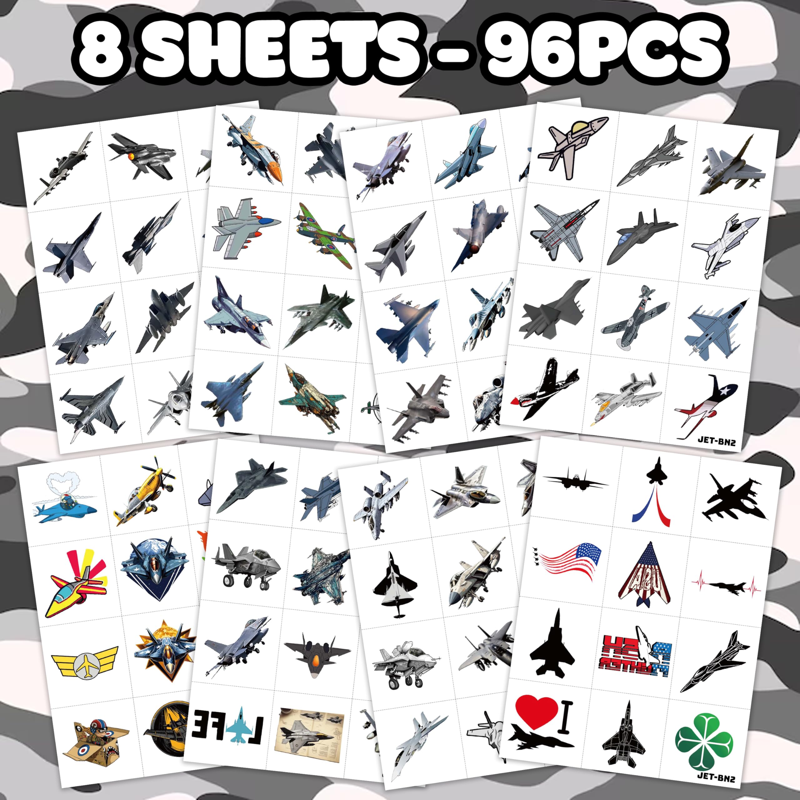 🛫PACKAGE INCLUDES:The package includes 10 sheets, each with 96 PCS and measures 6.3 x 4.7 inches, as well as a full set of fighter JET tattoos. This amazing ornament assortment is sure to exceed your expectations.