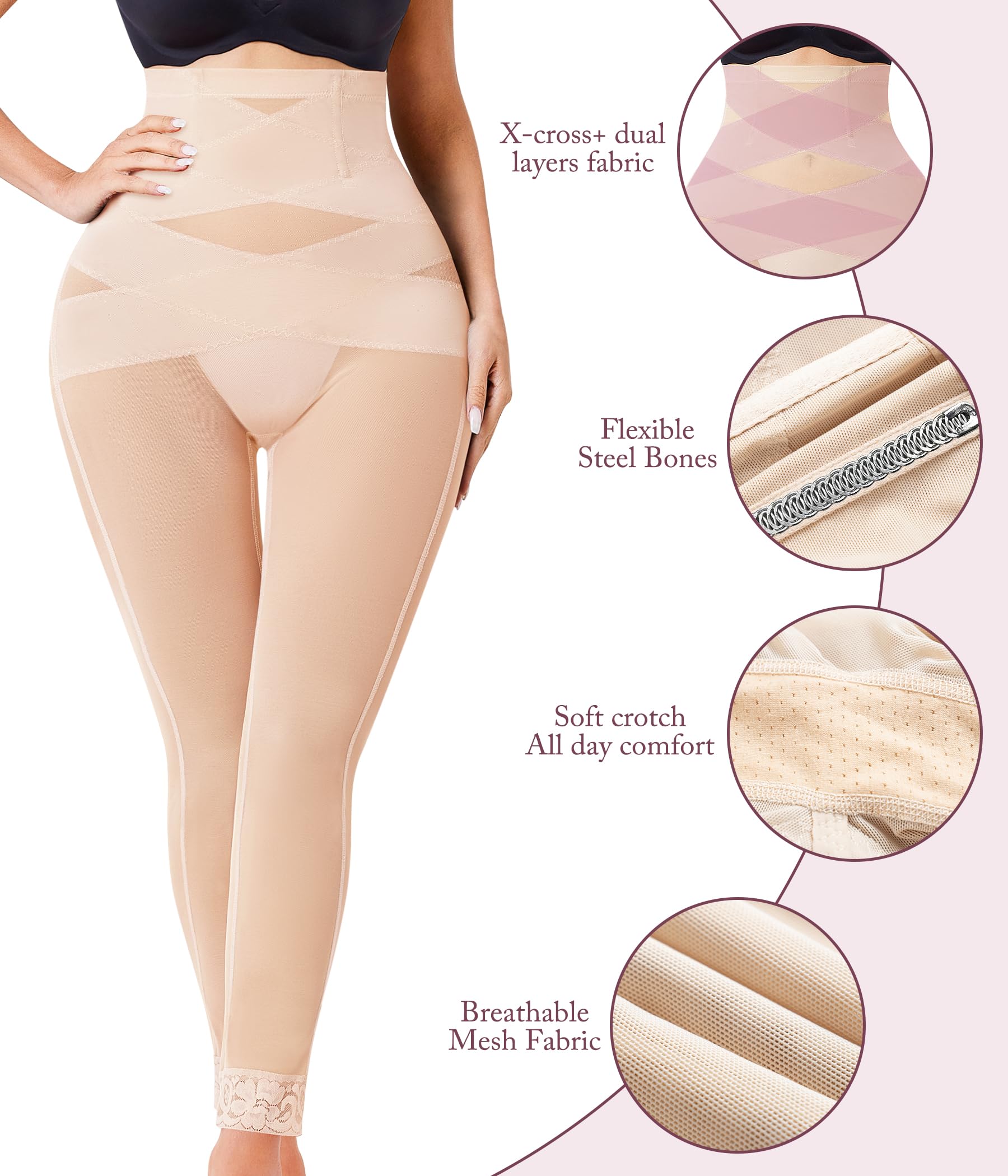 Sculpt Your Silhouette: Experience the ultimate transformation with our body shaper tummy control crafted specifically to sculpt and redefine your curves. Featuring an X-Cross double-layered fabric strategically positioned in the belly area, this girdles for women body shaper masterfully smooths out unwanted belly fat and flattens the muffin top. women's shapewear simultaneously tightens the love handles and cinches the waistline, creating a visibly slimmer and more elegant silhouette.