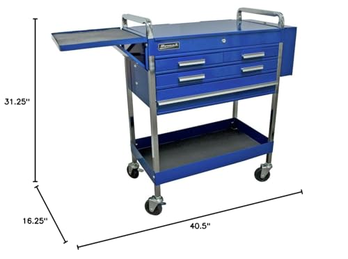 4-Drawer Super Cart: Featuring a locking flip-top lid, two half-length drawers, one shallow full-length drawer, and one deeper full-length drawer, this utility cart includes an expandable wing for added working surface