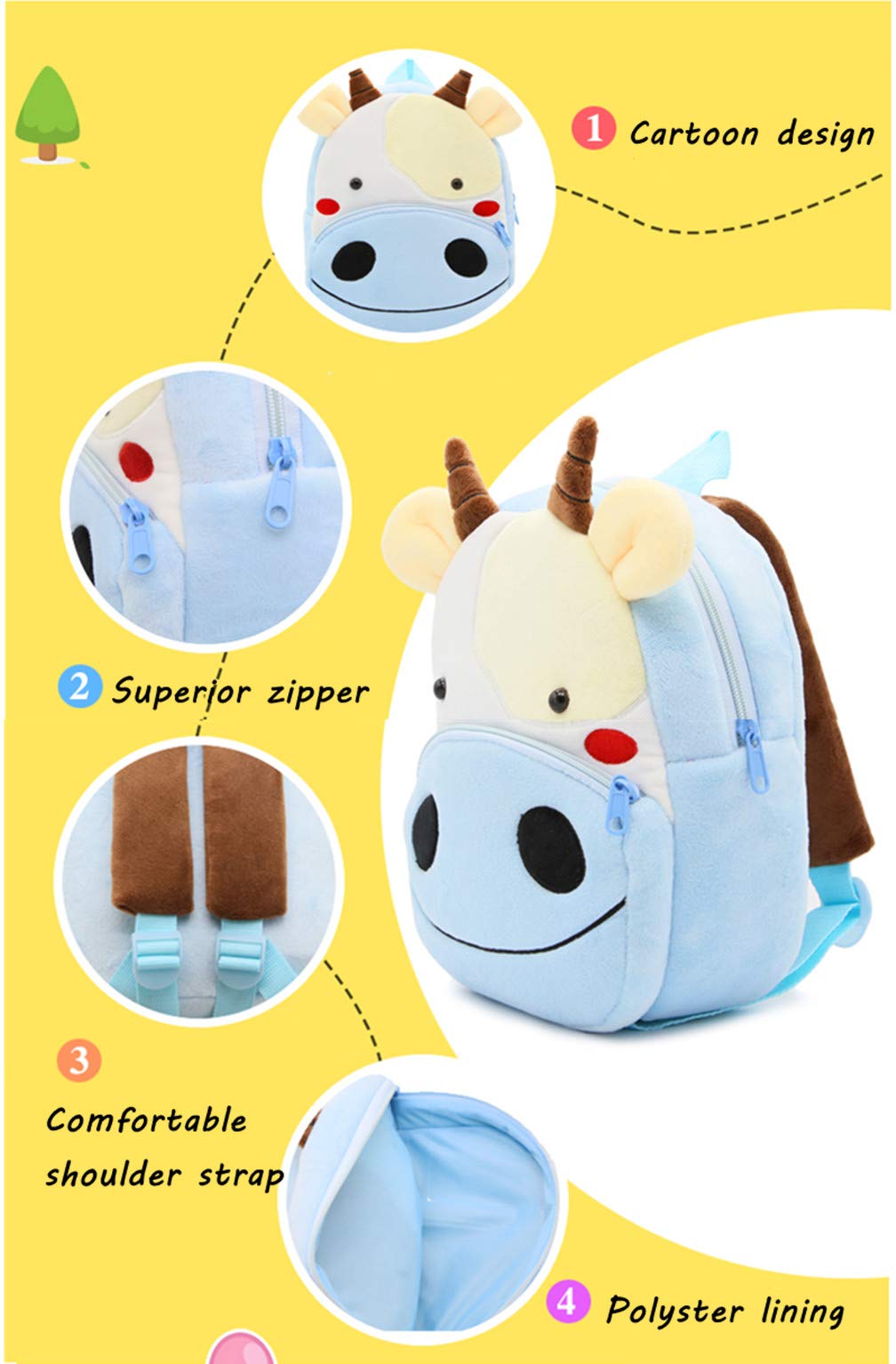 Our backpack have one small front pocket and a main compartment. Good-looking pattern and design will make them excited to go to school.