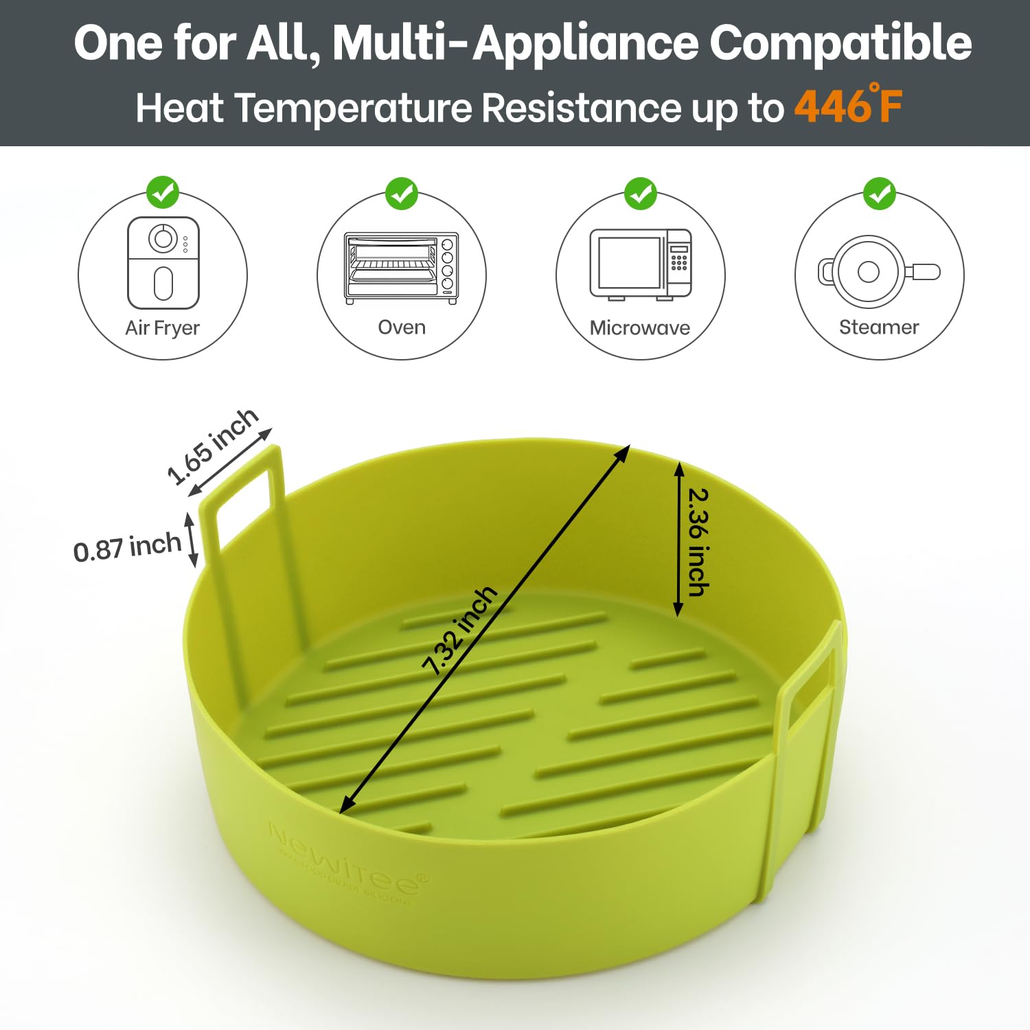 COOL KITCHEN GADGETS: NEWITEE's exclusively designed silicone air fryer liners comes in two different colors, allowing you to easily identify when cooking the same or two different foods. The 2 pack air fryer liners measures 7.5 x 7.5 x 2.4 inches and is a perfect fit for the 4 QT AF101 air fryer