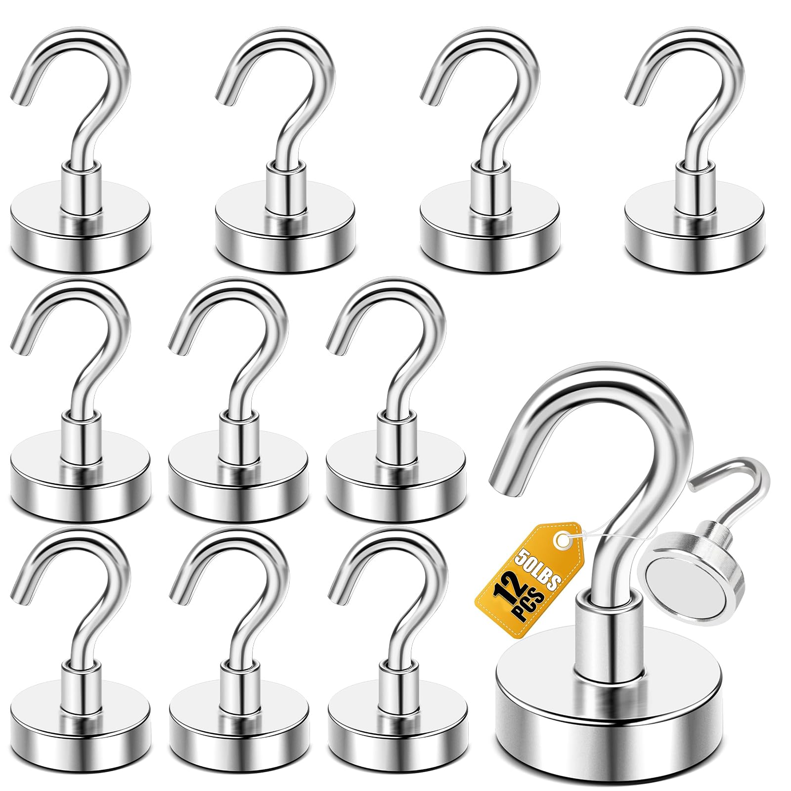【Hanging Capacity】 Silver magnetic utility hooks are great for hanging accessories on the metal surface. They are able to sustain maximum weight up to 50 lbs on vertical hanging and the power reduced by 2/3 on horizontal hanging