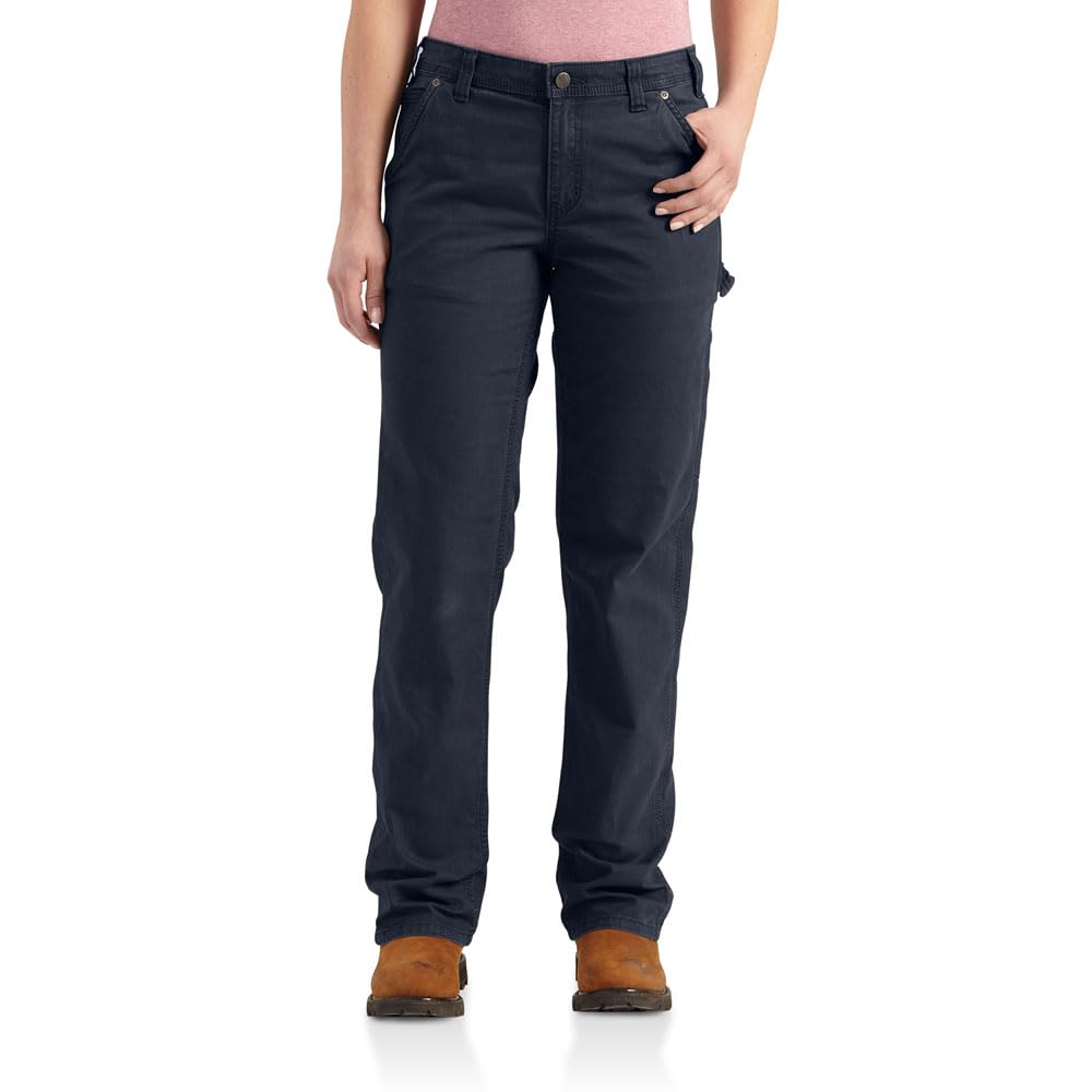Description Long shifts require pants that can stand up to hard work yet still remain comfortable. These women's pants fit the bill with a midweight canvas construction that has the stretch and flex you need for all the ways you move on the job. The original fit is Carhartt's roomiest. 8-ounce, 98% cotton / 2% spandex canvas. Built to move with Rugged Flex® stretch technology. Original Fit: Mid-rise sits just below the waist with an easy fit through the hip and thigh and a straight leg opening. Carhartt-strong, triple-stitched main seams. Waistband construction prevents gaping in the back. Utility pockets and loop. Imported